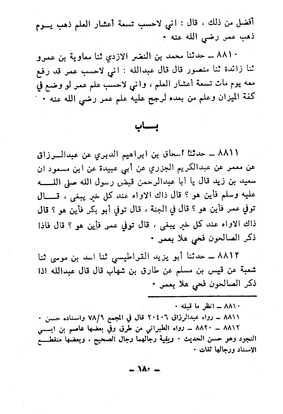 8888 - حَدَّثَنَا أَبُو مُسْلِمٍ الْكَشِّيُّ، ثنا عَبْدُ اللهِ بْنُ رَجَاءَ، أَنَا الْمَسْعُودِيُّ، عَنْ عَوْنٍ، قَالَ: قُلْتُ لِعُمَرَ بْنِ عَبْدِ الْعَزِيزِ: إِنَّ ابْنَ مَسْعُودٍ كَانَ يَقُولُ: «إِنَّهَا §سَتَكُونُ أُمُورٌ مُشْتَبِهَةٌ فَمَنْ رَضِيَهَا مِمَّنَ غَابَ عَنْهَا فَهُوَ كَمَنْ شَهِدَهَا، وَمَنْ كَرِهَهَا مِمَّنْ شَهِدَهَا فَهُوَ كَمَنْ غَابَ عَنْهَا، فَأَعْجَبَهُ»