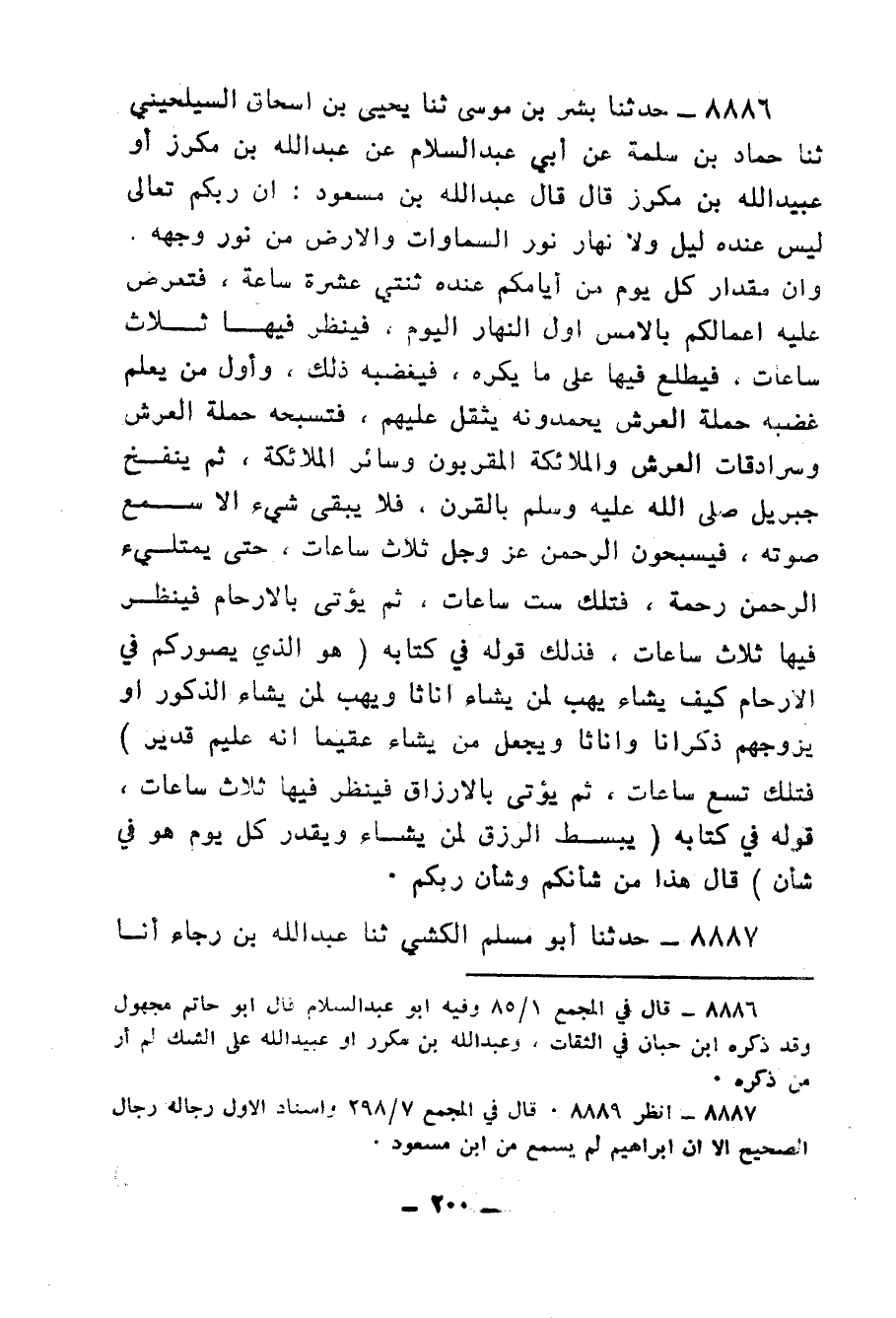 8979 - حَدَّثَنَا أَبُو مُسْلِمٍ الْكَشِّيُّ، ثنا عَبْدُ اللهِ بْنُ رَجَاءَ، ثنا الْمَسْعُودِيُّ، ح وَحَدَّثَنَا عَلِيُّ بْنُ عَبْدِ الْعَزِيزِ، ثنا أَبُو نُعَيْمٍ، ثنا الْمَسْعُودِيُّ، عَنْ عَوْنٍ، قَالَ: قَالَ عَبْدُ اللهِ لِأَصْحَابِهِ حِينَ قَدِمُوا عَلَيْهِ: «§هَلْ تَجَالَسُونَ؟» قَالُوا: لَيْسَ نَتْرُكُ ذَلِكَ، قَالَ: «فَهَلْ تَزَاوَرُونَ؟» قَالُوا: نَعَمْ يَا أَبَا عَبْدِ الرَّحْمَنِ، إِنَّ الرَّجُلَ مِنَّا لَيَفْقِدُ أَخَاهُ فَيَمْشِي فِي طَلَبِهِ إِلَى آخِرِ الْكُوفَةِ حَتَّى يَلْقَاهُ، قَالَ: «فَإِنَّكُمْ لَنْ تَزَالُوا بِخَيْرٍ مَا فَعَلْتُمْ ذَلِكَ»