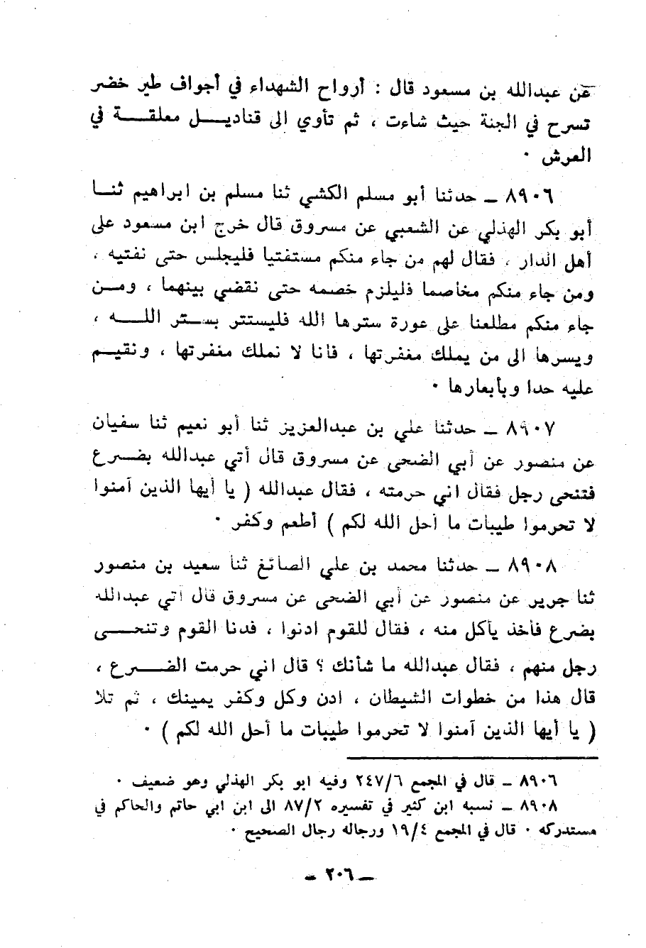 9006 - حَدَّثَنَا يُوسُفُ الْقَاضِي، ثنا سُلَيْمَانُ بْنُ حَرْبٍ، ثنا شُعْبَةُ، عَنِ الْحَكَمِ، عَنْ يَحْيَى بْنِ الْجَزَّارِ، أَنَّ رَجُلًا يُقَالُ لَهُ: أَبُو الْعُبَيْدَيْنِ - وَكَانَ رَجُلًا ضَرِيرًا - وَكَانَ عَبْدُ اللهِ بْنُ مَسْعُودٍ يَعْرِفُ لَهُ، فَسَأَلَهُ عَنِ §الْمَاعُونِ فَقَالَ: «الْفَأْسُ، وَالدَّلْوُ» - أَوْ قَالَ: «الْفَأْسُ، وَالْقِدْرُ» - وَسَأَلَهُ عَنِ التَّبْذِيرِ، فَقَالَ: «إِنْفَاقُ الْمَالِ فِي غَيْرِ حِلِّهِ» ، وَسَأَلَهُ عَنِ الْأَوَّاهِ، قَالَ: «الرَّحِيمُ»