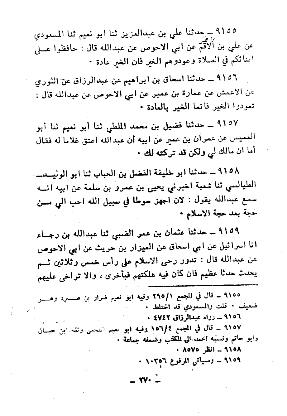 9349 - حَدَّثَنَا إِسْحَاقُ بْنُ إِبْرَاهِيمَ، عَنْ عَبْدِ الرَّزَّاقِ، عَنِ الثَّوْرِيِّ، ح وَحَدَّثَنَا عَلِيُّ بْنُ عَبْدِ الْعَزِيزِ، ثنا أَبُو نُعَيْمٍ، ثنا سُفْيَانُ، عَنْ سَلَمَةَ بْنِ كُهَيْلٍ، عَنْ أَبِي الْأَحْوَصِ، عَنِ ابْنِ مَسْعُودٍ قَالَ: «§مَنْ أَدْرَكَ الرَّكْعَةَ فَقَدْ أَدْرَكَ الصَّلَاةَ»