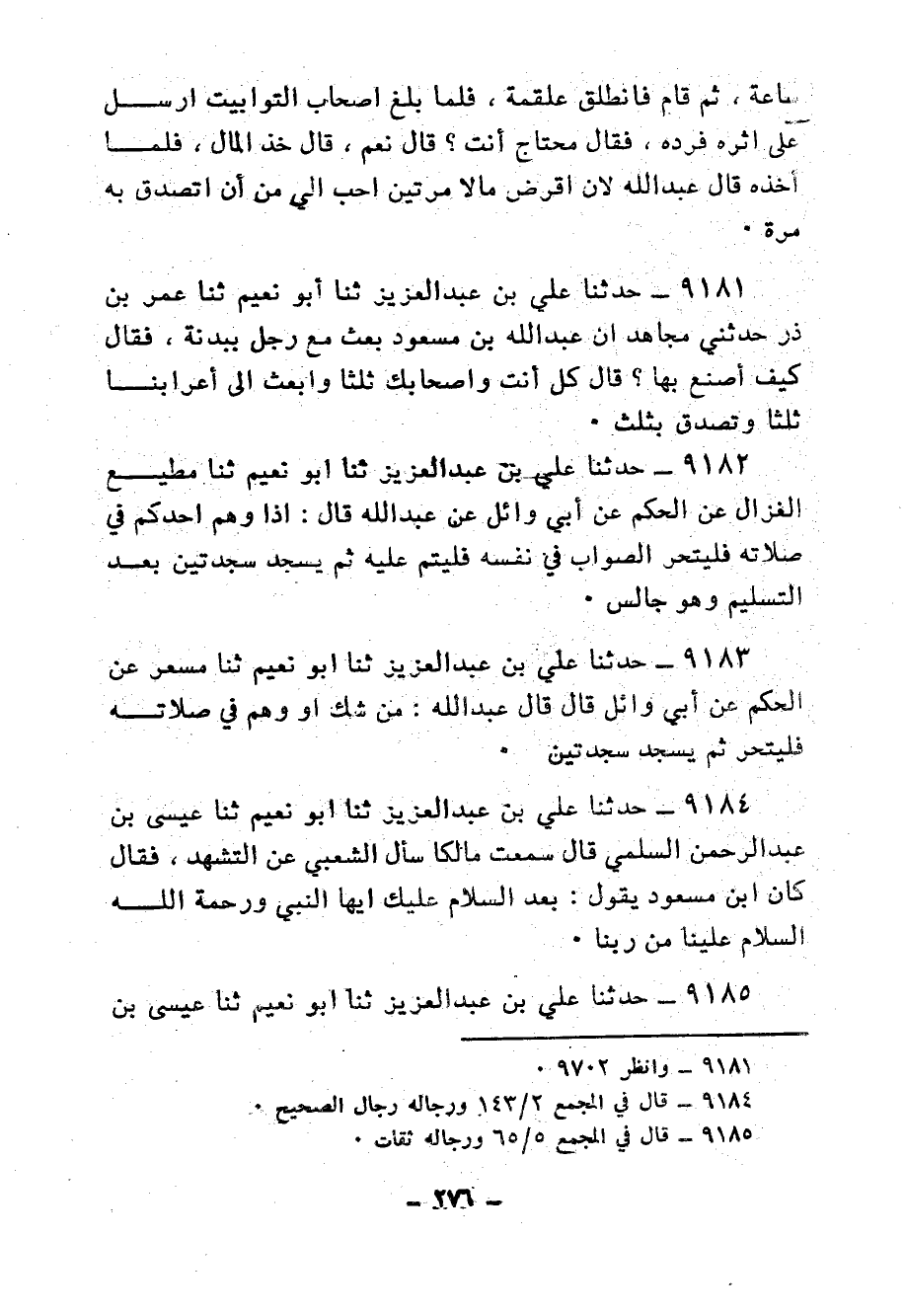 9383 - حَدَّثَنَا عَلِيُّ بْنُ عَبْدِ الْعَزِيزِ، ثنا حَجَّاجٌ، ثنا حَمَّادٌ، عَنْ حَمَّادٍ، عَنْ إِبْرَاهِيمَ، عَنِ ابْنِ مَسْعُودٍ، مِثْلَ ذَلِكَ