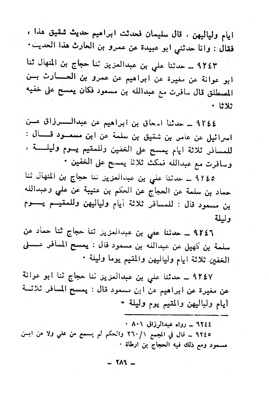 9455 - حَدَّثَنَا مُحَمَّدُ بْنُ النَّضْرِ الْأَزْدِيُّ، ثنا مُعَاوِيَةُ بْنُ عَمْرٍو، ثنا زَائِدَةُ، ثنا خُصَيْفٌ الْجَزَرِيُّ، حَدَّثَنِي زِيَادُ بْنُ أَبِي مَرْيَمَ، عَنْ عَبْدِ اللهِ بْنِ مَسْعُودٍ، أَنَّهُ قَالَ: " §لَا تَنْقُصُنَّ مِنْ صَلَاتِكُمْ فِي مَبَادِيكُمْ، وَلَا أَجْشَارِكُمْ، وَلَا تَسِيرُوا فِي قُرَى السَّوَادِ فِي حَوَائِجِكُمْ فَتَقُولُوا: إِنَّا سَفْرٌ، إِنَّمَا الْمُسَافِرُ مِنَ الْأُفُقِ إِلَى الْأُفُقِ "