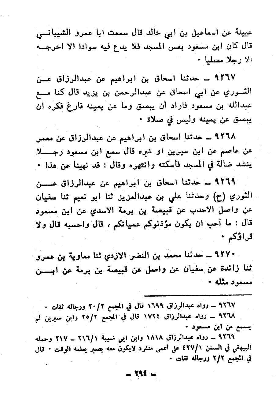 9475 - حَدَّثَنَا إِسْحَاقُ بْنُ إِبْرَاهِيمَ، أنا عَبْدُ الرَّزَّاقِ، أنا مَعْمَرٌ، عَنْ أَبِي إِسْحَاقَ، عَنْ أَبِي عَمْرٍو الشَّيْبَانِيِّ، أَنَّهُ: رَأَى ابْنَ مَسْعُودٍ، §يُخْرِجُ النِّسَاءَ مِنَ الْمَسْجِدِ يَوْمَ الْجُمُعَةِ، وَيَقُولُ: «اخْرُجْنَ إِلَى بُيُوتِكُنَّ خَيْرٌ لَكُنَّ»