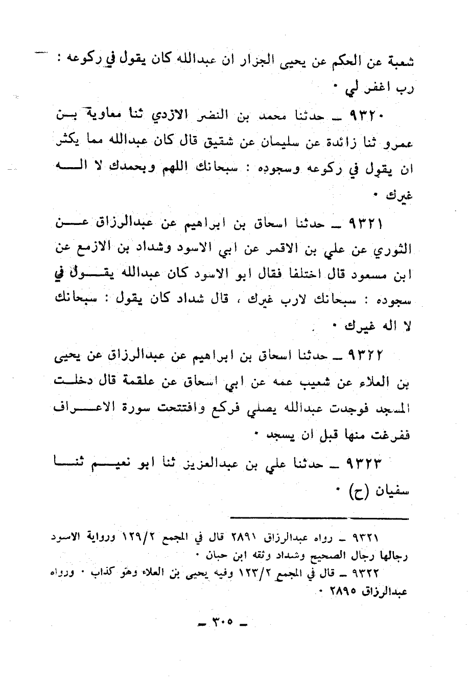 9523 - حَدَّثَنَا إِسْحَاقُ بْنُ إِبْرَاهِيمَ، عَنْ عَبْدِ الرَّزَّاقِ، عَنِ ابْنِ جُرَيْجٍ، أَخْبَرَنِي عَبْدُ الْكَرِيمِ عَنِ النَّخَعِيِّ، عَنْ عَلْقَمَةَ، وَالْأَسْوَدِ، عَنِ ابْنِ مَسْعُودٍ، قَالَ: «إِنَّ §بَيْنَ كُلِّ تَكْبِيرَتَيْنِ قَدْرُ كَلِمَةٍ»