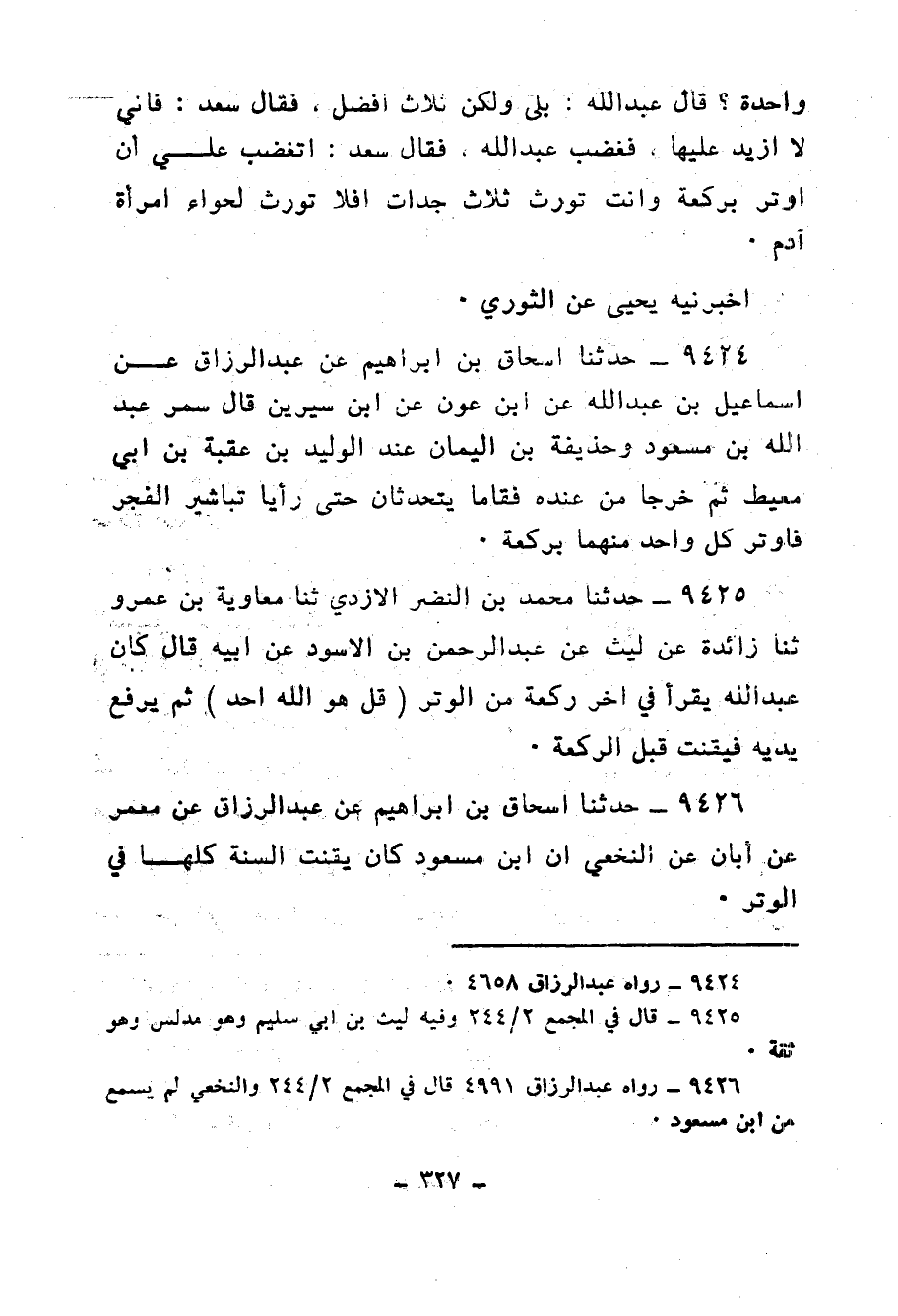 9631 - حَدَّثَنَا مُحَمَّدُ بْنُ النَّضْرِ الْأَزْدِيُّ، ثنا مُعَاوِيَةُ بْنُ عَمْرٍو، ثنا زَائِدَةُ، عَنْ مَنْصُورٍ، عَنْ إِبْرَاهِيمَ، عَنْ عَلْقَمَةَ، قَالَ: أَتَى رَجُلٌ عَبْدَ اللهِ، فَقَالَ: إِنِّي طَلَّقْتُ امْرَأَتِي تِسْعِينَ، وَإِنَّ لِي مِنْهَا وَلَدًا، وَإِنَّ نَاسًا يُرِيدُونَ أَنْ يُفَرِّقُوا بَيْنِي وَبَيْنَ أَهْلِي، فَقَالَ عَبْدُ اللهِ: «إِنَّمَا §يَكْفِيكَ ثَلَاثٌ، وَسَائِرُهُنَّ عُدْوَانٌ»