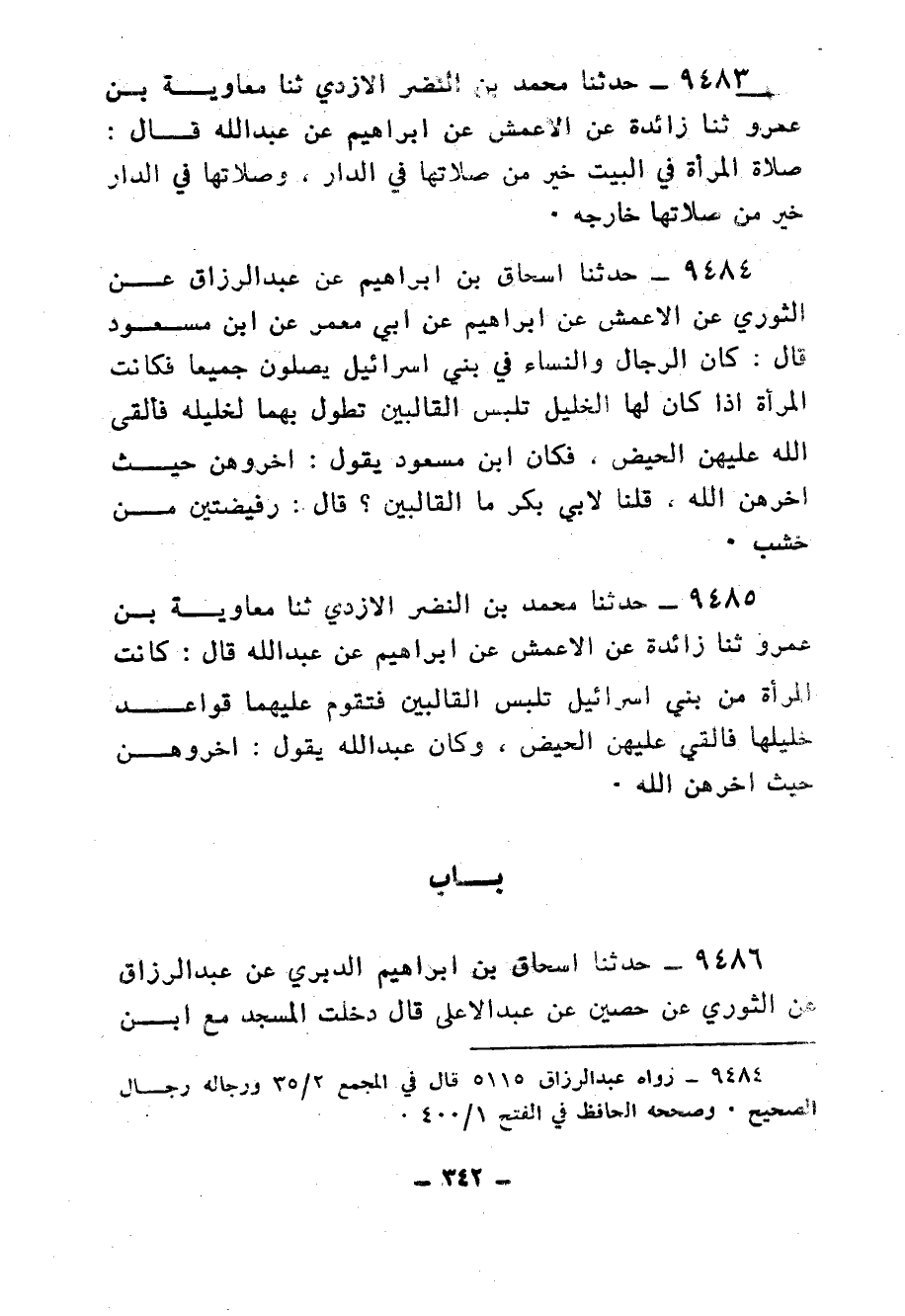 9701 - حَدَّثَنَا عَلِيُّ بْنُ عَبْدِ الْعَزِيزِ، ثنا أَبُو نُعَيْمٍ، ثنا سُفْيَانُ، عَنْ أَبِي إِسْحَاقَ، قَالَ: سَأَلْتُ عَبْدَ الرَّحْمَنِ بْنَ يَزِيدَ: §مَتَى دَفَعَ عَبْدُ اللهِ مِنْ جَمْعٍ؟ قَالَ: «كَانْصِرَافِ الْقَوْمِ الْمُسْفِرِينَ مِنْ صَلَاةِ الْغَدَاةِ»