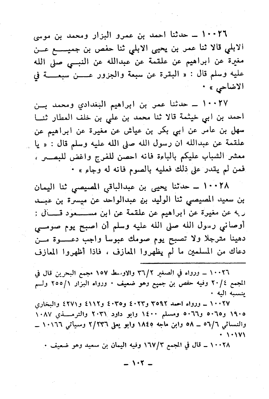 10092 - حَدَّثَنَا مُحَمَّدُ بْنُ عَبْدِ اللهِ الْحَضْرَمِيُّ، ثنا أَبُو بَكْرِ بْنُ أَبِي شَيْبَةَ، ثنا أَبُو خَالِدٍ، عَنْ يُونُسَ بْنِ أَبِي إِسْحَاقَ، عَنْ أَبِي إِسْحَاقَ، عَنْ أَبِي الْأَحْوَصِ، عَنْ عَبْدِ اللهِ قَالَ: كُنَّا جُلُوسًا عِنْدَ النَّبِيِّ صَلَّى اللهُ عَلَيْهِ وَسَلَّمَ، فَقَامَ رَجُلٌ، فَوَقَعَ فِيهِ رَجُلٌ مِنْ بَعْدِهِ، فَقَالَ النَّبِيُّ صَلَّى اللهُ عَلَيْهِ وَسَلَّمَ: «§تَخَلَّلْ» ، قَالَ: وَمَا أَتَخَلَّلُ يَا رَسُولَ اللهِ، أَكَلْتُ لَحْمًا؟ قَالَ: «إِنَّكَ أَكَلْتَ لَحْمَ أَخِيكَ»