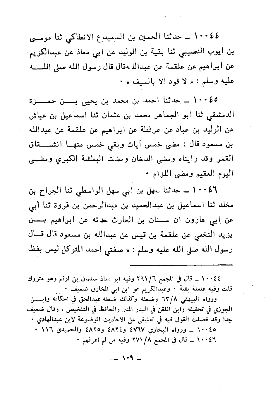 10119 - حَدَّثَنَا الْحَسَنُ بْنُ عَلُّويَةَ الْقَطَّانُ، ثنا إِسْمَاعِيلُ بْنُ عِيسَى الْعَطَّارُ، ثنا مُحَمَّدُ بْنُ حِمْيَرٍ، عَنْ إِسْمَاعِيلَ بْنِ عَيَّاشٍ، عَنْ جَعْفَرِ بْنِ الْحَارِثِ، عَنِ الْأَعْمَشِ، عَنْ عَبْدِ اللهِ بْنِ مُرَّةَ، عَنْ أَبِي الْأَحْوَصِ، عَنْ عَبْدِ اللهِ قَالَ: «§لَأَنْ أَحْلِفَ تِسْعًا أَنَّ ابْنَ صَيَّادٍ هُوَ الدَّجَّالُ أَحَبُّ إِلَيَّ مِنْ أَحْلِفَ وَاحِدَةً، وَلَأَنْ أَحْلِفَ تِسْعَةً أَنَّ رَسُولَ اللهِ صَلَّى اللهُ عَلَيْهِ وَسَلَّمَ قُتِلَ شَهِيدًا أَحَبُّ إِلَيَّ مِنْ أَنْ أَحْلِفَ وَاحِدَةً أَنَّهُ لَمْ يُقْتَلْ، ذَلِكَ أَنَّ اللهَ عَزَّ وَجَلَّ جَعَلَهُ نَبِيًّا، وَاتَّخَذَهُ شَهِيدًا»