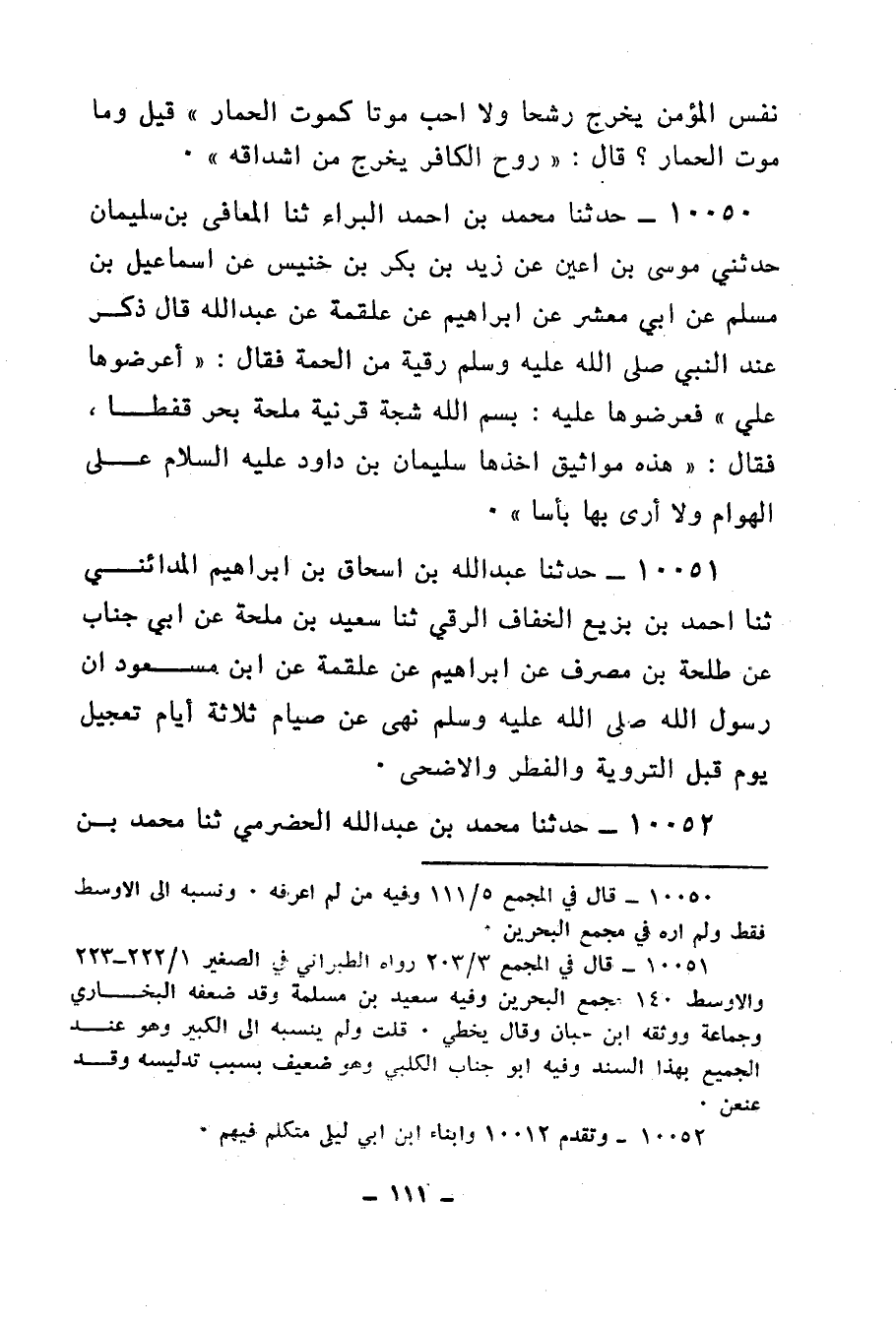 10129 - حَدَّثَنَا مُحَمَّدُ بْنُ عَبْدِ اللهِ الْحَضْرَمِيُّ، ثنا سَعِيدُ بْنُ عَمْرٍو الْأَشْعَثِيُّ، ثنا عَبْثَرُ بْنُ الْقَاسِمِ، عَنْ مُطَرِّفٍ، عَنْ أَبِي الْجَهْمِ، عَنِ الرَّضْرَاضِ، عَنْ عَبْدِ اللهِ بْنِ مَسْعُودٍ رَضِيَ اللهُ عَنْهُ قَالَ: كُنَّا نُسَلِّمُ عَلَى النَّبِيِّ صَلَّى اللهُ عَلَيْهِ وَسَلَّمَ فِي الصَّلَاةِ فَيَرُدُّ عَلَيْنَا، فَلَمَّا كَانَ ذَاتَ يَوْمٍ سَلَّمْتُ عَلَيْهِ فَلَمْ يَرُدَّ عَلَيَّ، فَسَأَلْتُهُ عَنْ ذَلِكَ، فَقَالَ: «إِنَّ §اللهَ عَزَّ وَجَلَّ يُحْدِثُ مِنْ أَمْرِهِ مَا شَاءَ»