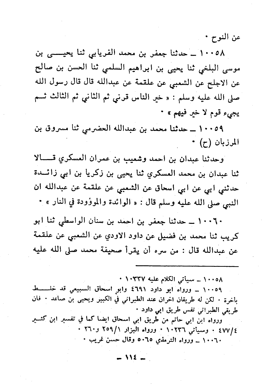 10138 - حَدَّثَنَا أَبُو خَلِيفَةَ الْفَضْلُ بْنُ الْحُبَابِ، ثنا إِبْرَاهِيمُ بْنُ بَشَّارٍ الرَّمَادِيُّ، ثنا سُفْيَانُ، عَنِ ابْنِ أَبِي نَجِيحٍ، عَنْ مُجَاهِدٍ، عَنْ أَبِي مَعْمَرٍ، عَنْ عَبْدِ اللهِ، ح قَالَ: وَحَدَّثَنَا سُفْيَانُ، عَنْ مَنْصُورٍ، عَنْ مُجَاهِدٍ، عَنْ أَبِي مَعْمَرٍ، عَنْ عَبْدِ اللهِ قَالَ: " جَلَسَ ثَلَاثَةُ نَفَرٍ عِنْدَ بَابِ الْكَعْبَةِ، قُرَشِيَّانِ وَثَقَفِيٌّ أَوْ ثَقَفِيَّانِ وَقُرَشِيٌّ، فَأَسَرَّ بَعْضُهُمْ إِلَى بَعْضٍ بِأَمْرٍ، فَقَالَ أَحَدُهُمْ: §أَتَرَوْنَ اللهَ يَسْمَعُ مَا نَقُولُ؟ فَقَالَ بَعْضُهُمْ: أَمَّا مَا جَهَرْنَا فَإِنَّهُ يَسْمَعُ، وَقَالَ الْآخَرُ: إِنْ كَانَ يَسْمَعُ مَا جَهَرْنَا بِهِ، فَإِنَّهُ يَسْمَعُ مَا أَسْرَرْنَا، فَأَنْزَلَ اللهُ تَبَارَكَ وَتَعَالَى {وَمَا كُنْتُمْ تَسْتَتِرُونَ} [فصلت: 22] الْآيَةَ " -[115]-.