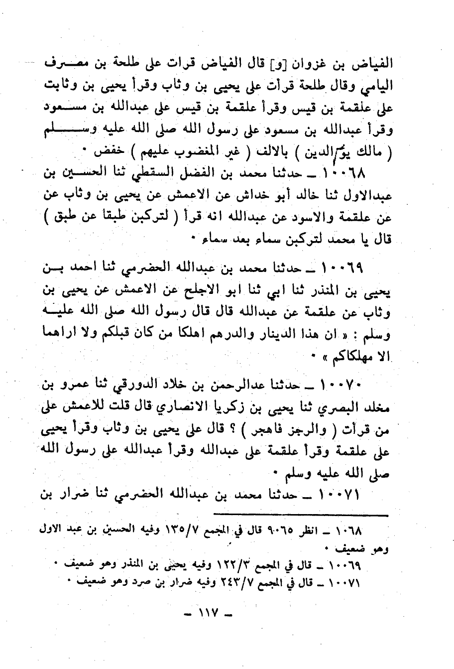 10147 - حَدَّثَنَا مُحَمَّدُ بْنُ عَبْدِ اللهِ الْحَضْرَمِيُّ، ثنا سَهْلُ بْنُ صَالِحٍ الْأَنْطَاكِيُّ، ثنا يَحْيَى بْنُ آدَمَ، ثنا إِسْرَائِيلُ، عَنِ الْأَعْمَشِ، عَنْ إِبْرَاهِيمَ، عَنْ هَمَّامِ بْنِ الْحَارِثِ، عَنْ عَبْدِ اللهِ قَالَ: §صَلَّيْتُ مَعَ النَّبِيِّ صَلَّى اللهُ عَلَيْهِ وَسَلَّمَ بِمِنًى رَكْعَتَيْنِ، وَمَعَ أَبِي بَكْرٍ رَكْعَتَيْنِ، وَمَعَ عُمَرَ رَكْعَتَيْنِ