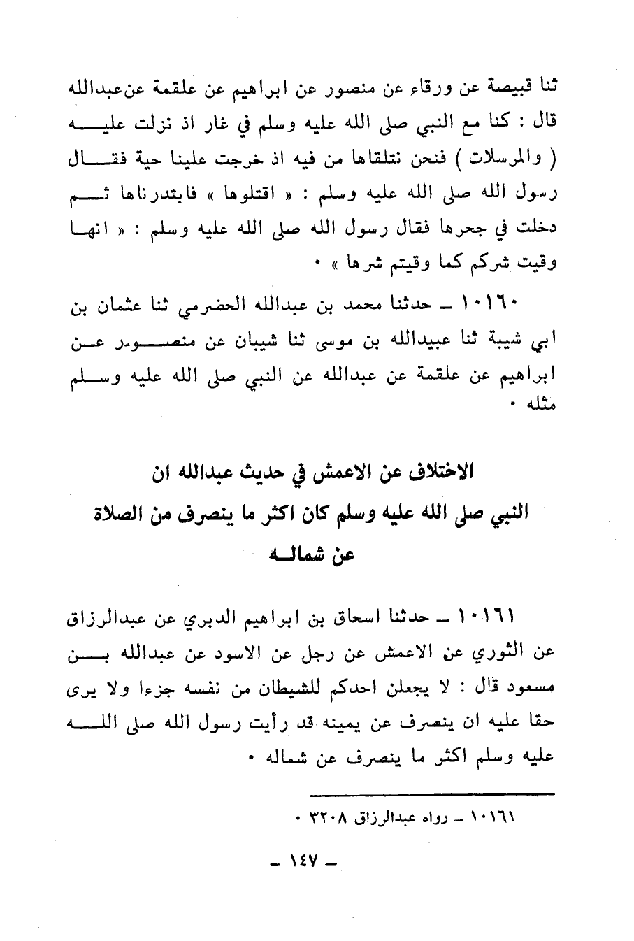 10271 - حَدَّثَنَا مُحَمَّدُ بْنُ إِبْرَاهِيمَ بْنِ عَامِرِ بْنِ إِبْرَاهِيمَ، حَدَّثَنِي أَبِي، عَنْ جَدِّي، عَنِ النُّعْمَانِ بْنِ عَبْدِ السَّلَامِ، عَنْ عِيسَى بْنِ الضَّحَّاكِ، عَنِ الْأَعْمَشِ، عَنْ أَبِي إِسْحَاقَ، عَنْ أَبِي عُبَيْدَةَ، عَنْ عَبْدِ اللهِ، عَنِ النَّبِيِّ صَلَّى اللهُ عَلَيْهِ وَسَلَّمَ نَحْوَهُ
