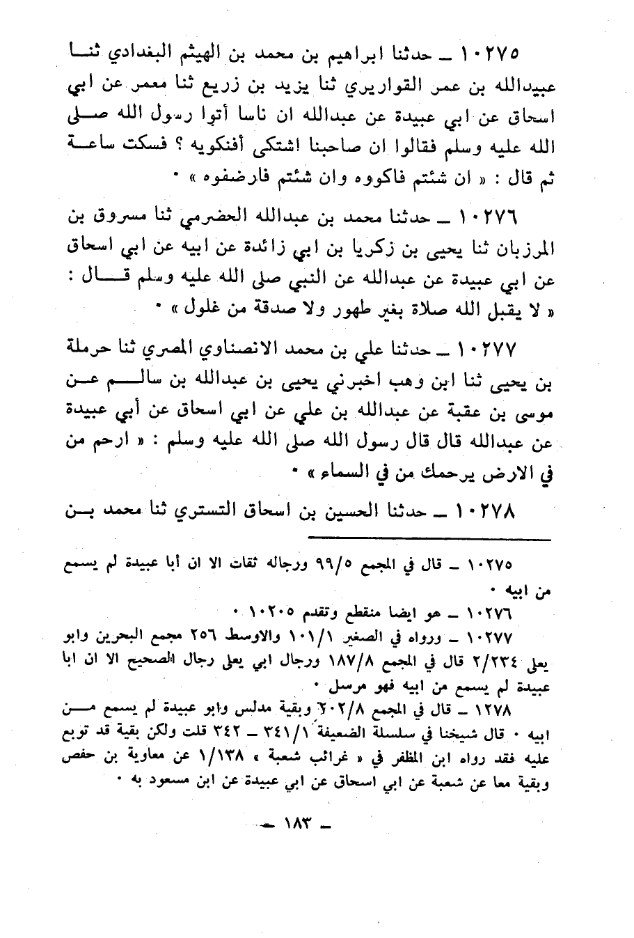 10396 - حَدَّثَنَا مُحَمَّدُ بْنُ الْحُسَيْنِ الْأَنْمَاطِيُّ، ثنا عُبَيْدُ بْنُ جَنَّادٍ الْحَلَبِيُّ، ثنا عَطَاءُ بْنُ مُسْلِمٍ، عَنِ الْأَعْمَشِ، عَنْ زَيْدِ بْنِ وَهْبٍ، عَنْ عَبْدِ اللهِ قَالَ: قَالَ رَسُولُ اللهِ صَلَّى اللهُ عَلَيْهِ وَسَلَّمَ: «§لَا تَدْخُلُوا الْجَنَّةَ حَتَّى تُؤْمِنُوا، وَلَا تُؤْمِنُوا حَتَّى تَحَابُّوا، أَلَا أَدُلُّكُمْ عَلَى شَيْءٍ إِذَا فَعَلْتُمُوهُ تَحَابَبْتُمْ؟ إِفْشَاءُ السَّلَامِ بَيْنَكُمْ»