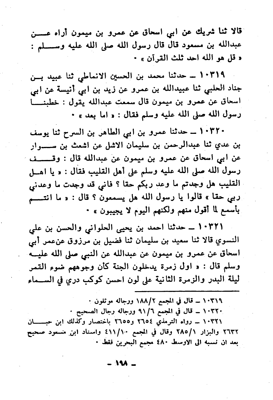 10448 - حَدَّثَنَا الْحَسَنُ بْنُ عَلِيٍّ الْفَسَوِيُّ، ثنا سَعِيدُ بْنُ سُلَيْمَانَ، ثنا مُسْهِرُ بْنُ عَبْدِ الْمَلِكِ بْنِ سَلْعٍ الْهَمْدَانِيُّ، عَنِ الْأَعْمَشِ، عَنْ أَبِي وَائِلٍ، عَنْ عَبْدِ اللهِ قَالَ: قَالَ رَسُولُ اللهِ صَلَّى اللهُ عَلَيْهِ وَسَلَّمَ: «§إِذَا ذُكِرَ أَصْحَابِي فَأَمْسِكُوا، وَإِذَا ذُكِرَتِ النُّجُومُ فَأَمْسِكُوا، وَإِذَا ذُكِرَ الْقَدَرُ فَأَمْسِكُوا»