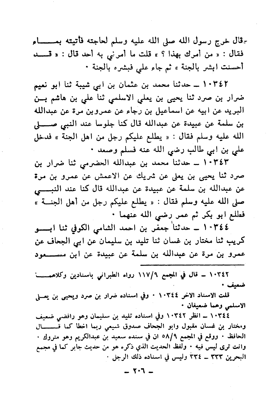 10479 - حَدَّثَنَا عَلِيُّ بْنُ عَبْدِ الْعَزِيزِ، ثنا ابْنُ الْأَصْبَهَانِيِّ، ثنا مُعَاوِيَةُ بْنُ هِشَامٍ، ثنا شَرِيكٌ، عَنْ عُثْمَانَ بْنِ أَبِي زُرْعَةَ، عَنْ أَبِي صَادِقٍ، عَنْ عَبْدِ الرَّحْمَنِ بْنِ يَزِيدَ، عَنْ عَبْدِ اللهِ بْنِ مَسْعُودٍ قَالَ: قَالَ رَسُولُ اللهِ صَلَّى اللهُ عَلَيْهِ وَسَلَّمَ: «§لِلْجَنَّةِ ثَمَانِيَةُ أَبْوَابٍ؛ سَبْعَةٌ مُغْلَقَةٌ، وَبَابٌ مَفْتُوحٌ لِلتَّوْبَةِ حَتَّى تَطْلُعَ الشَّمْسُ مِنْ نَحْوِهِ»