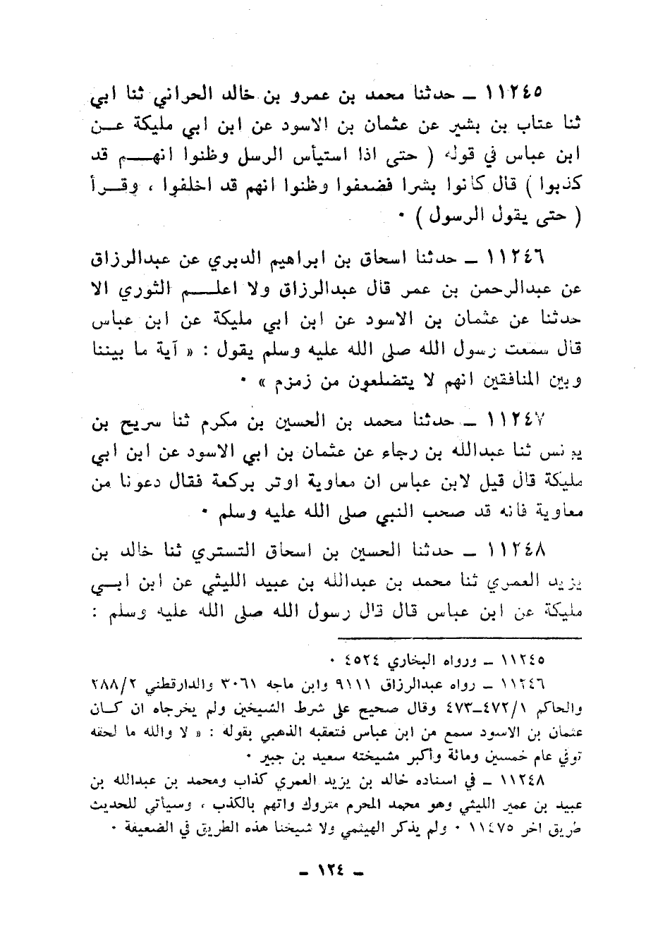 11245 - حَدَّثَنَا مُحَمَّدُ بْنُ عَمْرِو بْنِ خَالِدٍ الْحَرَّانِيُّ، ثنا أَبِي، ثنا عَتَّابُ بْنُ بَشِيرٍ، عَنْ عُثْمَانَ بْنِ الْأَسْوَدِ، عَنِ ابْنِ أَبِي مُلَيْكَةَ، عَنِ ابْنِ عَبَّاسٍ، فِي قَوْلِهِ: {حَتَّى إِذَا اسْتَيْأَسَ الرُّسُلُ وَظَنُّوا أَنَّهُمْ قَدْ كُذِبُوا} [يوسف: 110] قَالَ: «§كَانُوا بَشَرًا فَضَعُفُوا وَظَنُّوا أَنَّهُمْ قَدْ أُخْلِفُوا» ، وَقَرَأَ {حَتَّى يَقُولَ الرَّسُولُ} [البقرة: 214]
