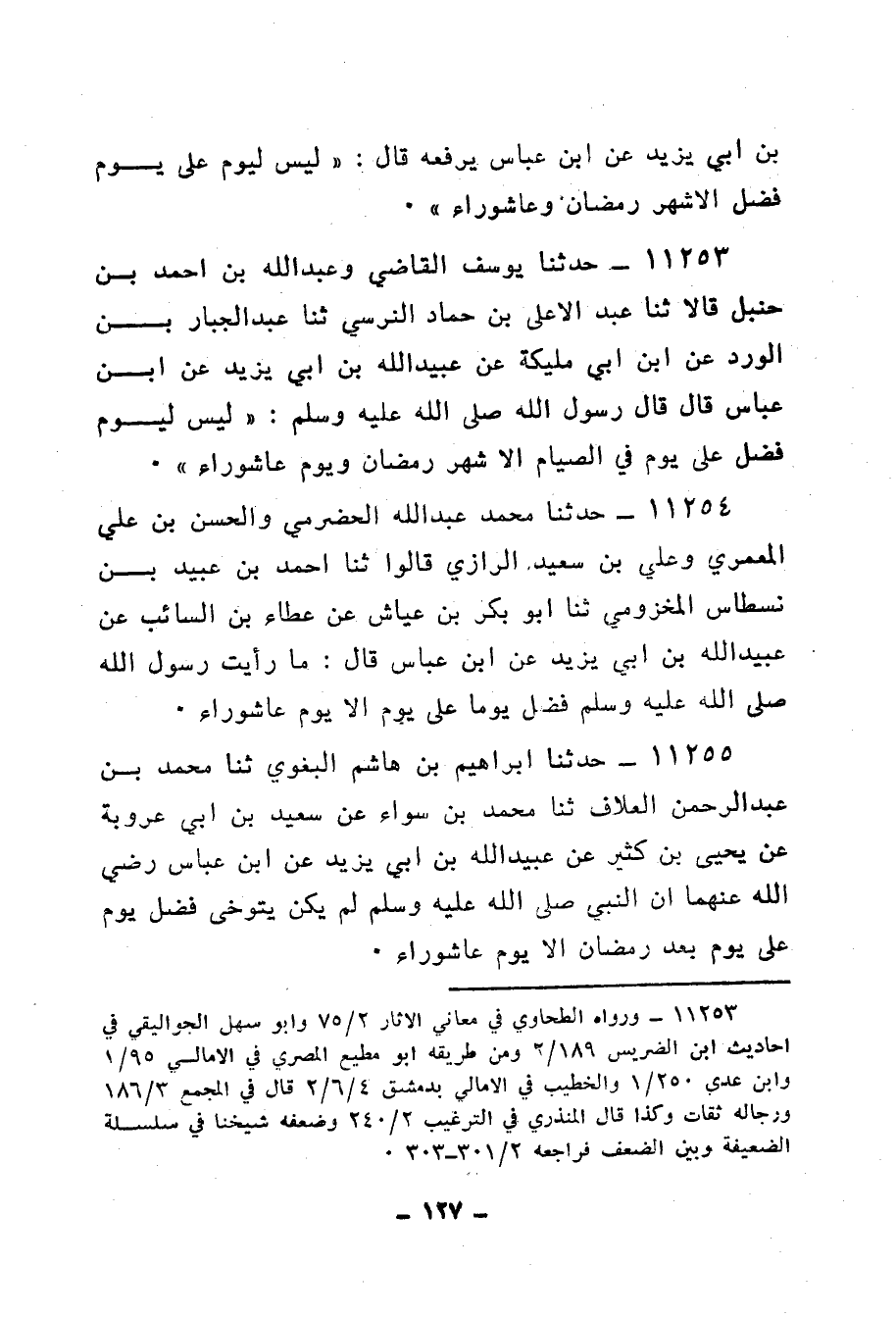 11254 - حَدَّثَنَا مُحَمَّدُ بْنُ عَبْدِ اللهِ الْحَضْرَمِيُّ، وَالْحَسَنُ بْنُ عَلِيٍّ الْمَعْمَرِيُّ، وَعَلِيُّ بْنُ سَعِيدٍ الرَّازِيُّ قَالُوا: ثنا أَحْمَدُ بْنُ عُبَيْدِ بْنِ نِسْطَاسٍ الْمَخْزُومِيُّ، ثنا أَبُو بَكْرِ بْنُ عَيَّاشٍ، عَنْ عَطَاءِ بْنِ السَّائِبِ، عَنْ عُبَيْدِ اللهِ بْنِ أَبِي يَزِيدَ، عَنِ ابْنِ عَبَّاسٍ، قَالَ: «§مَا رَأَيْتُ رَسُولَ اللهِ صَلَّى اللهُ عَلَيْهِ وَسَلَّمَ فَضَّلَ يَوْمًا عَلَى يَوْمٍ إِلَّا يَوْمَ عَاشُورَاءَ»