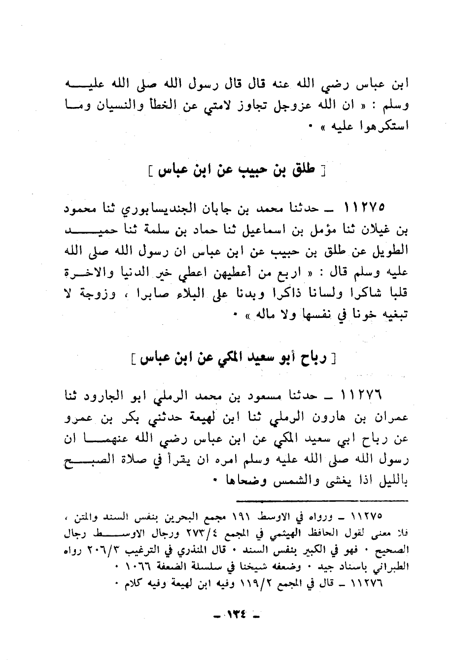 11275 - حَدَّثَنَا مُحَمَّدُ بْنُ جَابَانَ الْجُنْدِيسَابُورِيُّ، ثنا مَحْمُودُ بْنُ غَيْلَانَ، ثنا مُؤَمَّلُ بْنُ إِسْمَاعِيلَ، ثنا حَمَّادُ بْنُ سَلَمَةَ، ثنا حُمَيْدٌ الطَّوِيلُ، عَنْ طَلَّقِ بْنِ حَبِيبٍ، عَنِ ابْنِ عَبَّاسٍ، أَنَّ رَسُولَ اللهِ صَلَّى اللهُ عَلَيْهِ وَسَلَّمَ قَالَ: " §أَرْبَعٌ مَنْ أُعْطِيَهُنَّ أُعْطِيَ خَيْرَ الدُّنْيَا وَالْآخِرَةِ: قَلْبًا شَاكِرًا، وَلِسَانًا ذَاكِرًا، وَبَدَنًا عَلَى الْبَلَاءِ صَابِرًا، وَزَوْجَةً لَا تَبْغِيهِ خَوْنًا فِي نَفْسِهَا وَلَا مَالِهِ "