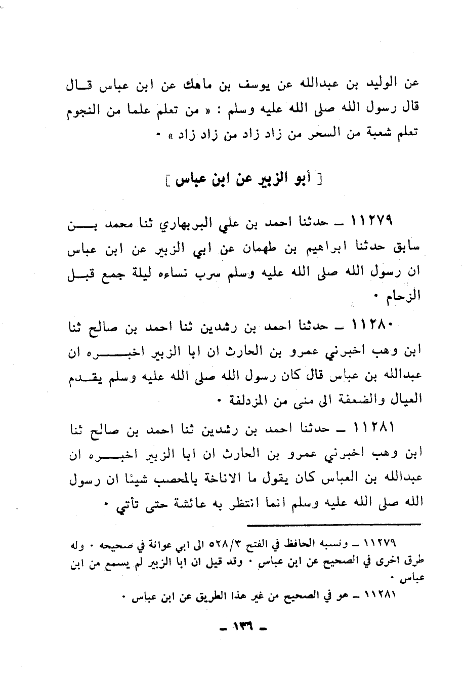 11281 - حَدَّثَنَا أَحْمَدُ بْنُ رِشْدِينَ، ثنا أَحْمَدُ بْنُ صَالِحٍ، ثنا ابْنُ وَهْبٍ، أَخْبَرَنِي عَمْرُو بْنُ الْحَارِثِ، أَنَّ أَبَا الزُّبَيْرِ، أَخْبَرَهُ، أَنَّ عَبْدَ اللهِ بْنَ الْعَبَّاسِ كَانَ يَقُولُ: مَا الْإِناخةُ بِالْمُحَصَّبِ شَيْئًا، إِنَّ رَسُولَ اللهِ صَلَّى اللهُ عَلَيْهِ وَسَلَّمَ: «§إِنَّمَا انْتَظَرَ بِهِ عَائِشَةَ حَتَّى تَأْتِيَ»