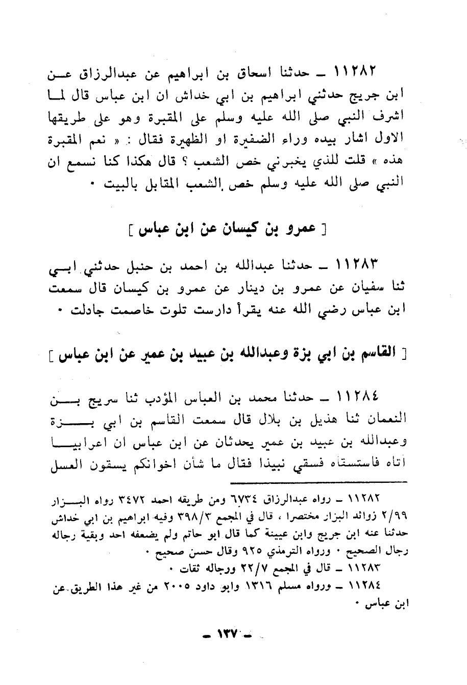 11282 - حَدَّثَنَا إِسْحَاقُ بْنُ إِبْرَاهِيمَ، عَنْ عَبْدِ الرَّزَّاقِ، عَنِ ابْنِ جُرَيْجٍ، حَدَّثَنِي إِبْرَاهِيمُ بْنُ أَبِي خِدَاشٍ، أَنَّ ابْنَ عَبَّاسٍ، قَالَ: لَمَّا أَشْرَفَ النَّبِيُّ صَلَّى اللهُ عَلَيْهِ وَسَلَّمَ عَلَى الْمَقْبَرَةِ وَهُوَ عَلَى طَرِيقِهَا الْأَوَّلِ أَشَارَ بِيَدِهِ وَرَاءَ الضَّفِيرَةِ أَوِ الظَّهِيرَةِ فَقَالَ: «نِعْمَ الْمَقْبَرَةُ هَذِهِ» قُلْتُ لِلَّذِي يُخْبِرُنِي: خَصَّ الشِّعْبَ؟ قَالَ: هَكَذَا كُنَّا نَسْمَعُ أَنَّ النَّبِيَّ صَلَّى اللهُ عَلَيْهِ وَسَلَّمَ «§خَصَّ الشِّعْبَ الْمُقَابِلَ بِالْبَيْتِ»
