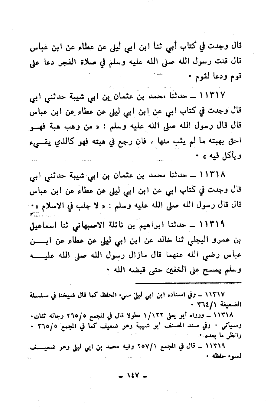 11317 - حَدَّثَنَا مُحَمَّدُ بْنُ عُثْمَانَ بْنِ أَبِي شَيْبَةَ، حَدَّثَنِي أَبِي، قَالَ: وَجَدْتُ فِي كِتَابِ أَبِي، عَنِ ابْنِ أَبِي لَيْلَى، عَنْ عَطَاءٍ، عَنِ ابْنِ عَبَّاسٍ، قَالَ: قَالَ رَسُولُ اللهِ صَلَّى اللهُ عَلَيْهِ وَسَلَّمَ: «مَنْ وَهَبَ هِبَةً فَهُوَ أَحَقُّ بِهِبَتِهِ مَا لَمْ يُثَبْ مِنْهَا، §فَإِنْ رَجَعَ فِي هِبَتِهِ فَهُوَ كَالَّذِي يَقِيءُ وَيَأْكُلُ قَيْئَهُ»