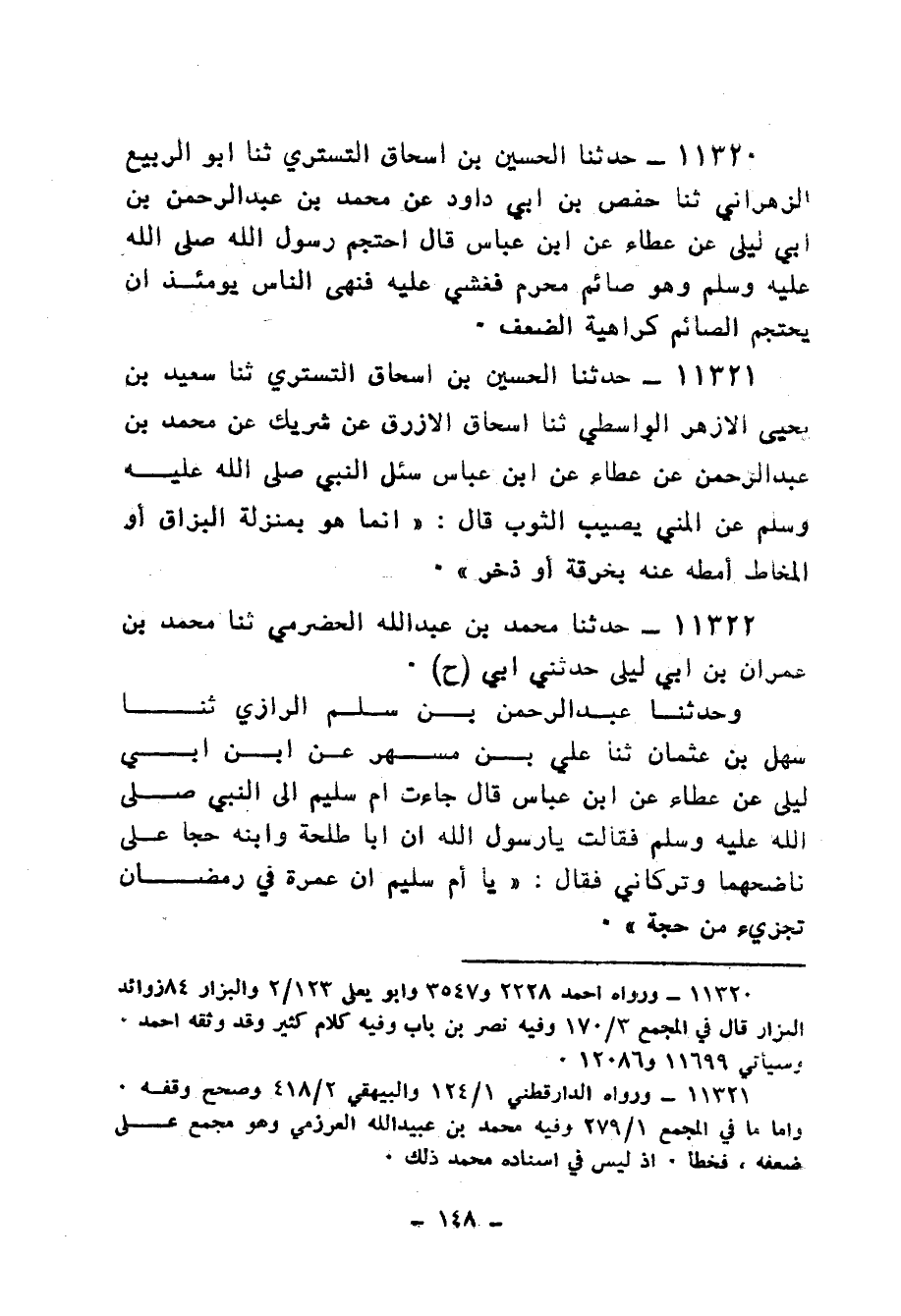 11320 - حَدَّثَنَا الْحُسَيْنُ بْنُ إِسْحَاقَ التُّسْتَرِيُّ، ثنا أَبُو الرَّبِيعِ الزَّهْرَانِيُّ، ثنا حَفْصُ بْنُ أَبِي دَاوُدَ، عَنْ مُحَمَّدِ بْنِ عَبْدِ الرَّحْمَنِ بْنِ أَبِي لَيْلَى، عَنْ عَطَاءٍ، عَنِ ابْنِ عَبَّاسٍ، قَالَ: «§احْتَجَمَ رَسُولُ اللهِ صَلَّى اللهُ عَلَيْهِ وَسَلَّمَ وَهُوَ صَائِمٌ مُحْرِمٌ، فَغُشِي عَلَيْهِ فَنَهَى النَّاسَ يَوْمَئِذٍ أَنْ يَحْتَجِمَ الصَّائِمُ كَرَاهِيَةَ الضَّعْفِ»