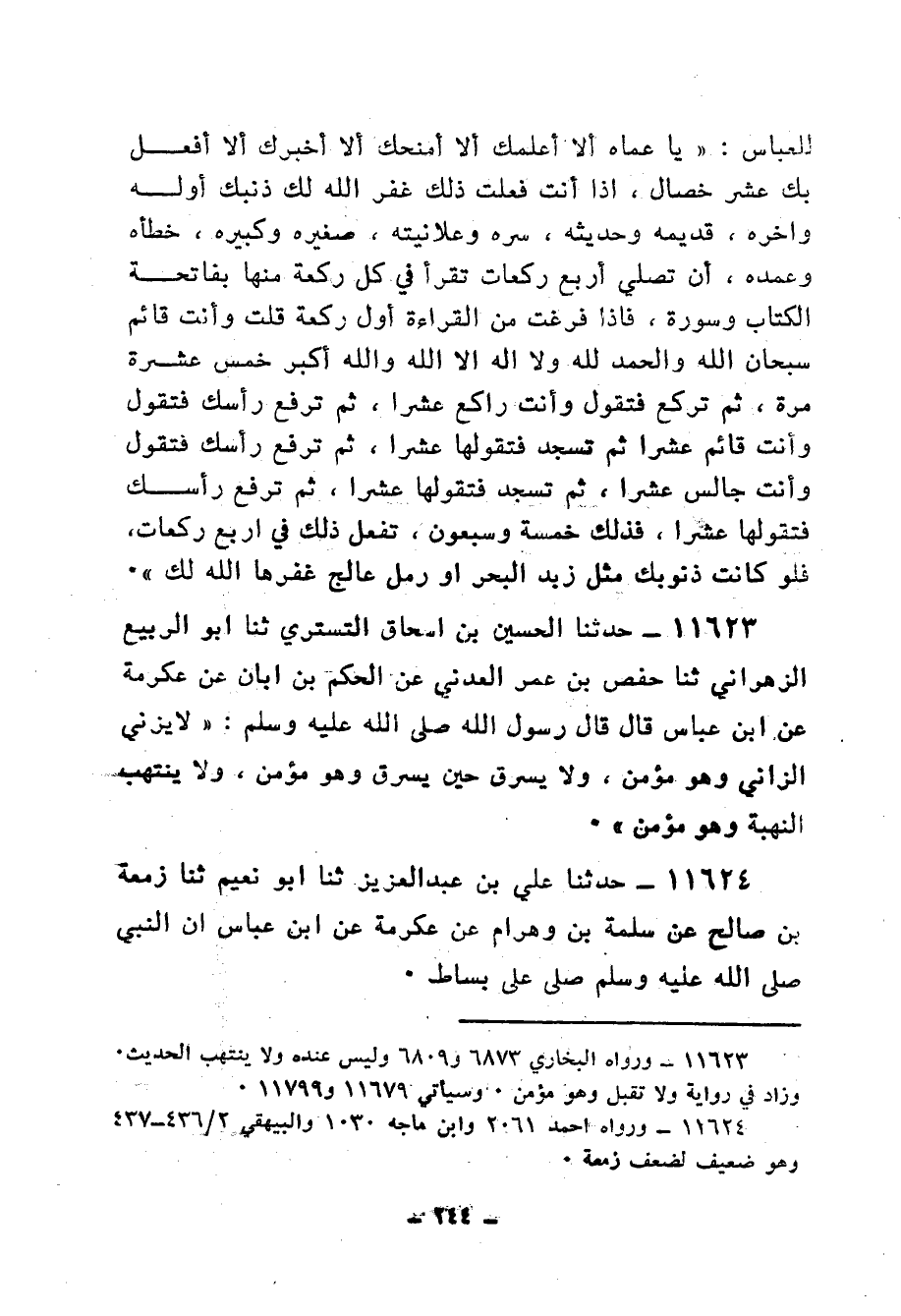 11623 - حَدَّثَنَا الْحُسَيْنُ بْنُ إِسْحَاقَ التُّسْتَرِيُّ، ثنا أَبُو الرَّبِيعِ الزَّهْرَانِيُّ، ثنا حَفْصُ بْنُ عُمَرَ الْعَدَنِيُّ، عَنِ الْحَكَمِ بْنِ أَبَانَ، عَنْ عِكْرِمَةَ، عَنِ ابْنِ عَبَّاسٍ، قَالَ: قَالَ رَسُولُ اللهِ صَلَّى اللهُ عَلَيْهِ وَسَلَّمَ: «§لَا يَزْنِي الزَّانِي وَهُوَ مُؤْمِنٌ، وَلَا يَسْرِقُ حِينَ يَسْرِقُ وَهُوَ مُؤْمِنٌ، وَلَا يَنْتَهِبُ النُّهْبَةَ وَهُوَ مُؤْمِنٌ»