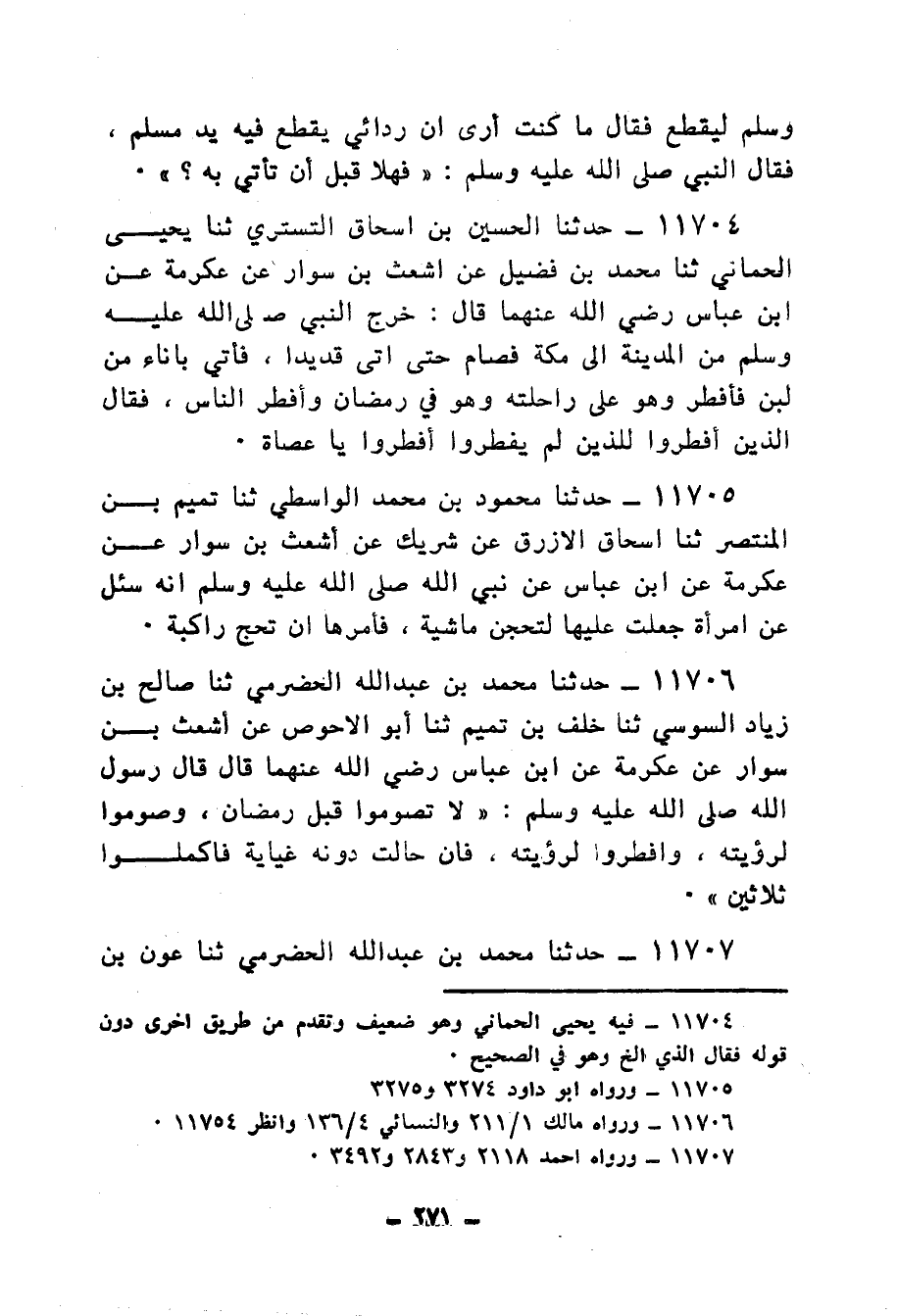 11706 - حَدَّثَنَا مُحَمَّدُ بْنُ عَبْدِ اللهِ الْحَضْرَمِيُّ، ثنا صَالِحُ بْنُ زِيَادٍ السوسيُّ، ثنا خَلَفُ بْنُ تَمِيمٍ، ثنا أَبُو الْأَحْوَصِ، عَنْ أَشْعَثَ بْنِ سَوَّارٍ، عَنْ عِكْرِمَةَ، عَنِ ابْنِ عَبَّاسٍ رَضِي اللهُ عَنْهُمَا، قَالَ: قَالَ رَسُولُ اللهِ صَلَّى اللهُ عَلَيْهِ وَسَلَّمَ: «§لَا تَصُومُوا قَبْلَ رَمَضَانَ، وَصُومُوا لِرُؤْيَتِهِ، وَأَفْطِرُوا لِرُؤْيَتِهِ، فَإِنْ حَالَتْ دُونَهُ غَيَايَةٌ فَأَكْمِلُوا ثَلَاثِينَ»