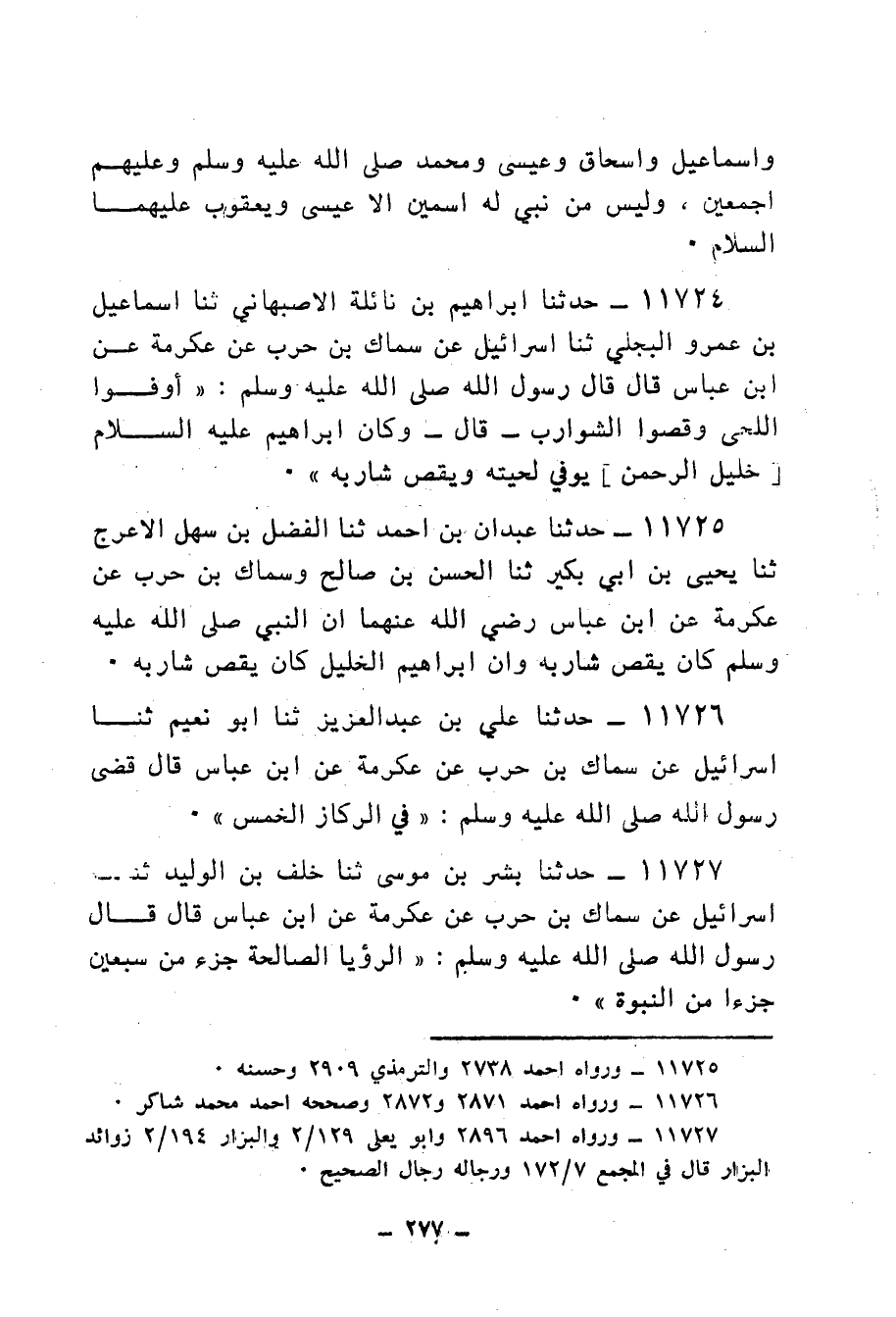 11724 - حَدَّثَنَا إِبْرَاهِيمُ بْنُ نَائِلَةَ الْأَصْبَهَانِيُّ، ثنا إِسْمَاعِيلُ بْنُ عَمْرٍو الْبَجَلِيُّ، ثنا إِسْرَائِيلُ، عَنْ سِمَاكِ بْنِ حَرْبٍ، عَنْ عِكْرِمَةَ، عَنِ ابْنِ عَبَّاسٍ، قَالَ: قَالَ رَسُولُ اللهِ صَلَّى اللهُ عَلَيْهِ وَسَلَّمَ: «§أَوْفُوا اللِّحَى، وقُصُّوا الشَّوَارِبَ» قَالَ: «وَكَانَ إِبْرَاهِيمُ عَلَيْهِ السَّلَامُ خَلِيلَ الرَّحْمَنِ، يُوفِّي لِحْيَتَهُ، ويَقُصُّ شَارِبَهُ»