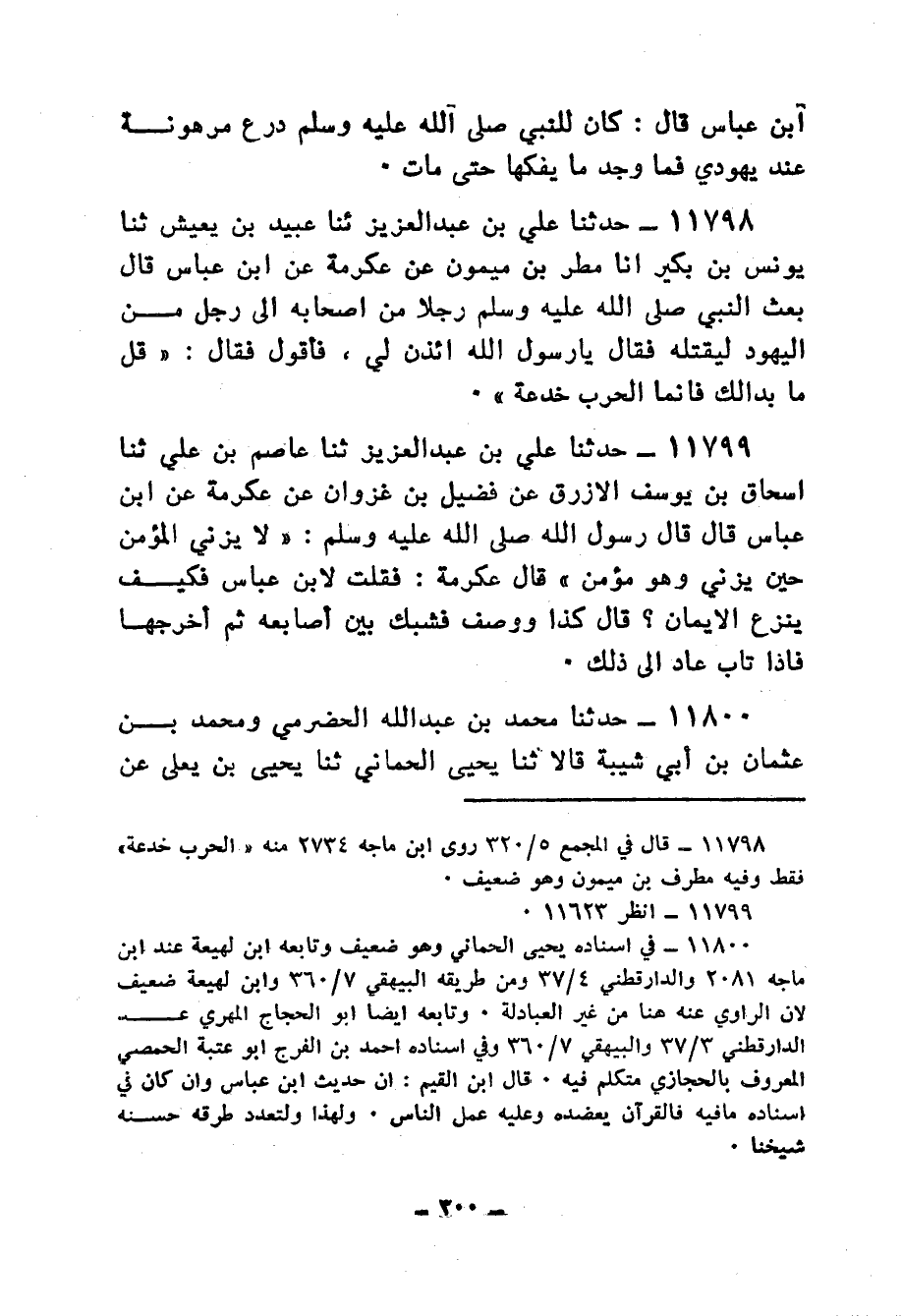 11798 - حَدَّثَنَا عَلِيُّ بْنُ عَبْدِ الْعَزِيزِ، ثنا عُبَيْدُ بْنُ يَعِيشَ، ثنا يُونُسُ بْنُ بُكَيْرٍ، أَنَا مَطَرُ بْنُ مَيْمُونَ، عَنْ عِكْرِمَةَ، عَنِ ابْنِ عَبَّاسٍ، قَالَ: بَعَثَ النَّبِيُّ صَلَّى اللهُ عَلَيْهِ وَسَلَّمَ رَجُلًا مِنْ أَصْحَابِهِ إِلَى رَجُلٍ مِنَ الْيَهُودِ لِيَقْتُلَهُ فَقَالَ: يَا رَسُولَ اللهِ، ائْذَنْ لِي فَأَقُولَ فَقَالَ: «قُلْ مَا بَدَا لَكَ §فَإِنَّمَا الْحَرْبُ خَدْعَةٌ»