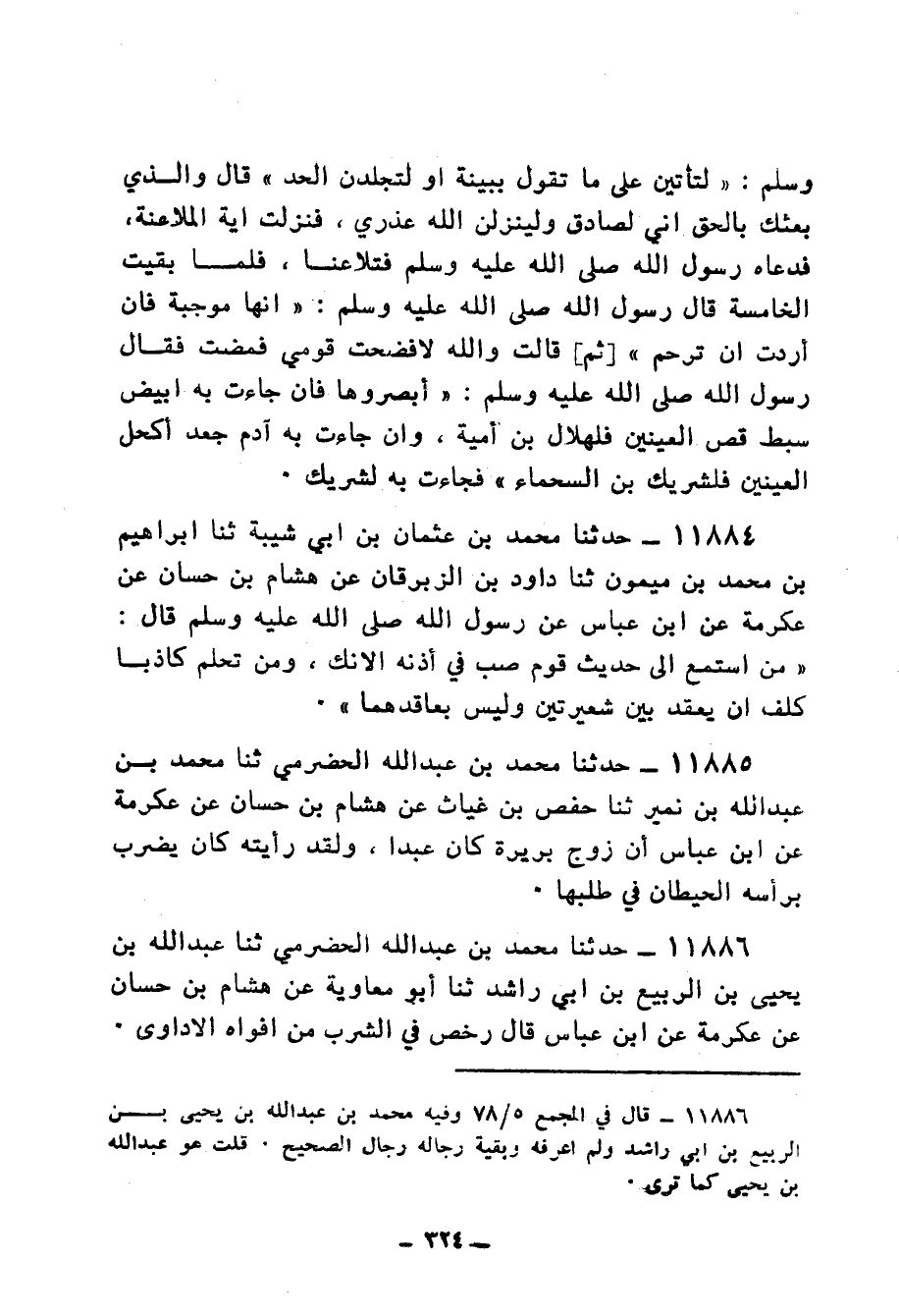 11885 - حَدَّثَنَا مُحَمَّدُ بْنُ عَبْدِ اللهِ الْحَضْرَمِيُّ، ثنا مُحَمَّدُ بْنُ عَبْدِ اللهِ بْنِ نُمَيْرٍ، ثنا حَفْصُ بْنُ غِيَاثٍ، عَنْ هِشَامِ بْنِ حَسَّانَ، عَنْ عِكْرِمَةَ، عَنِ ابْنِ عَبَّاسٍ، «أَنَّ §زَوْجَ بَرِيرَةَ كَانَ عَبْدًا، وَلَقَدْ رَأَيْتُهُ كَانَ يَضْرِبُ بِرَأْسِهِ الْحِيطَانَ فِي طَلَبِهَا»