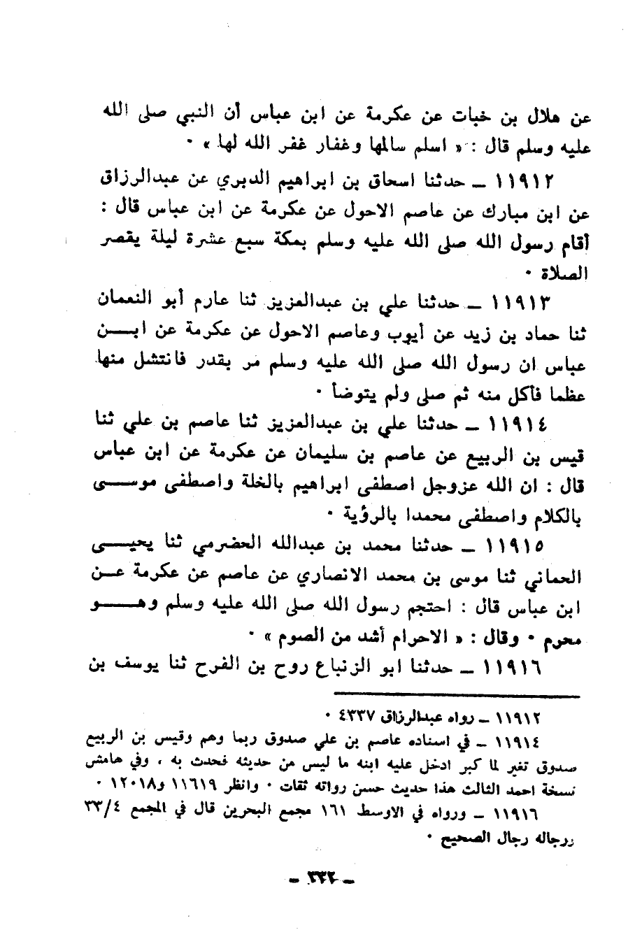 11914 - حَدَّثَنَا عَلِيُّ بْنُ عَبْدِ الْعَزِيزِ، ثنا عَاصِمُ بْنُ عَلِيٍّ، ثنا قَيْسُ بْنُ الرَّبِيعِ، عَنْ عَاصِمِ بْنِ سُلَيْمَانَ، عَنْ عِكْرِمَةَ، عَنِ ابْنِ عَبَّاسٍ، قَالَ: «إِنَّ §اللهَ عَزَّ وَجَلَّ اصْطَفَى إِبْرَاهِيمَ بِالْخُلَّةِ، وَاصْطَفَى مُوسَى بِالْكَلَامِ، وَاصْطَفَى مُحَمَّدًا بِالرُّؤْيَةِ»