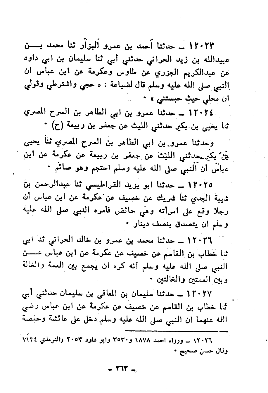 12023 - حَدَّثَنَا أَحْمَدُ بْنُ عَمْرٍو الْبَزَّارُ، ثنا مُحَمَّدُ بْنُ عُبَيْدِ اللهِ بْنِ يَزِيدَ الْحَرَّانِيُّ، حَدَّثَنِي أَبِي، ثنا سُلَيْمَانُ بْنُ أَبِي دَاوُدَ، عَنْ عَبْدِ الْكَرِيمِ الْجَزَرِيِّ، عَنْ طَاوُسٍ، وَعِكْرِمَةِ، عَنِ ابْنِ عَبَّاسٍ، أَنَّ النَّبِيَّ صَلَّى اللهُ عَلَيْهِ وَسَلَّمَ قَالَ لِضُبَاعَةَ: «§حُجِّي وَاشْتَرِطِي وَقُولِي إِنَّ مَحِلِّي حَيْثُ حَبَسْتَنِي»