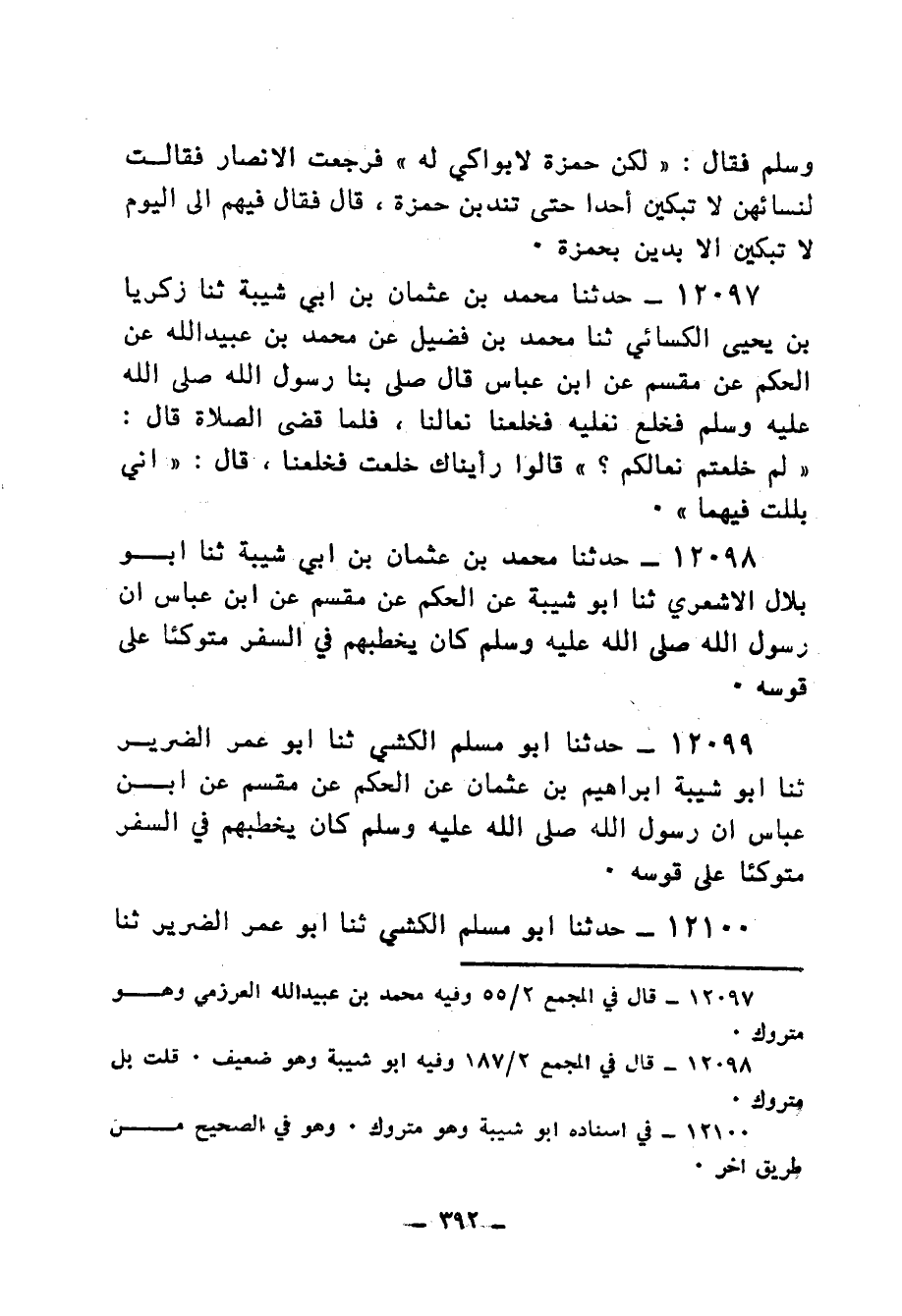 12098 - حَدَّثَنَا مُحَمَّدُ بْنُ عُثْمَانَ بْنِ أَبِي شَيْبَةَ، ثنا أَبُو بِلَالٍ الْأَشْعَرِيُّ، ثنا أَبُو شَيْبَةَ، عَنِ الْحَكَمِ، عَنْ مِقْسَمٍ، عَنِ ابْنِ عَبَّاسٍ، أَنَّ رَسُولَ اللهِ صَلَّى اللهُ عَلَيْهِ وَسَلَّمَ كَانَ «§يَخْطُبُهُمْ فِي السَّفَرِ مُتَوَكِّئًا عَلَى قَوْسِهِ»