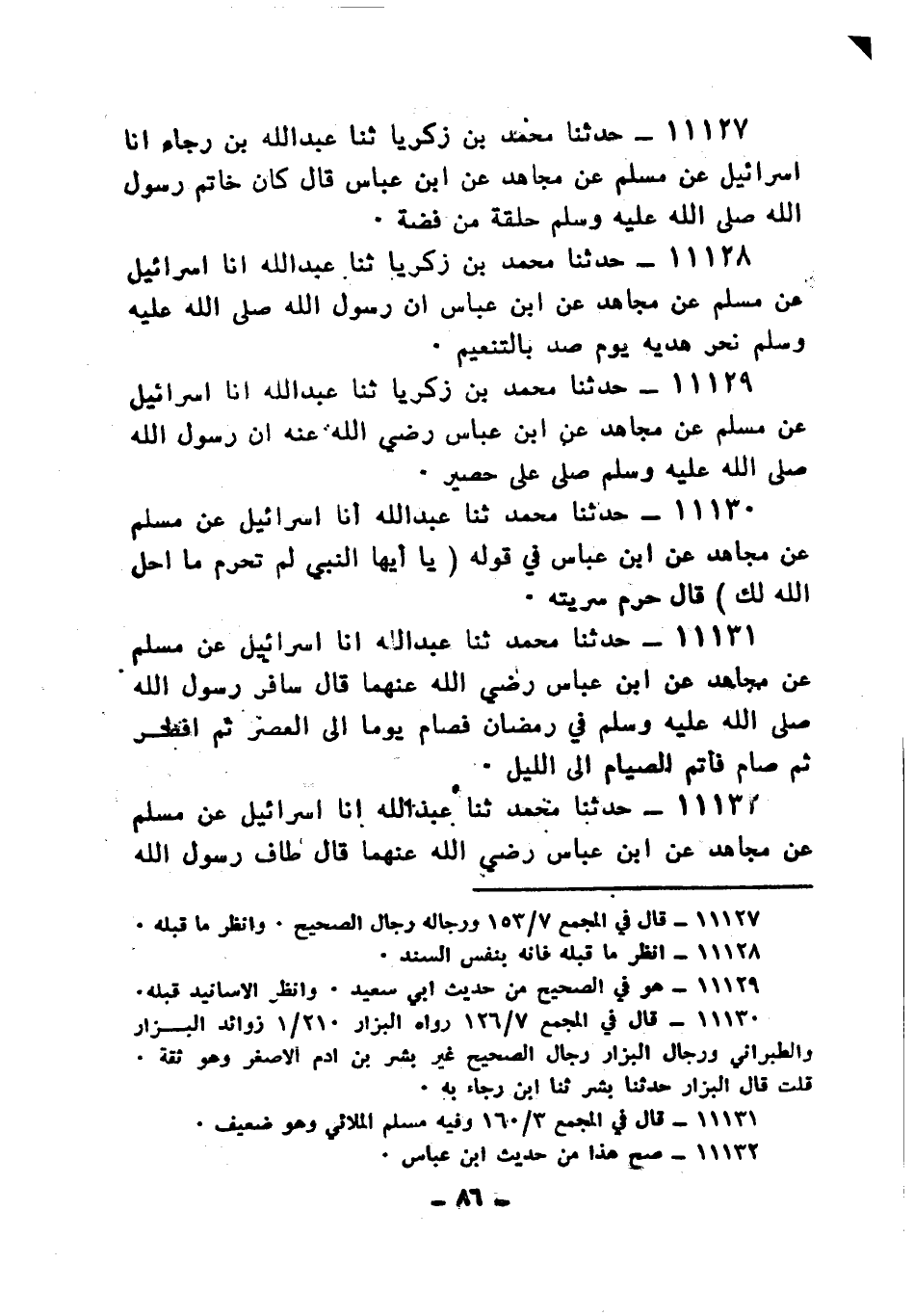 11129 - حَدَّثَنَا مُحَمَّدُ بْنُ زَكَرِيَّا، ثنا عَبْدُ اللهِ، أنا إِسْرَائِيلُ، عَنْ مُسْلِمٍ، عَنْ مُجَاهِدٍ، عَنِ ابْنِ عَبَّاسٍ رَضِي اللهُ عَنْهُ: «أَنَّ رَسُولَ اللهِ صَلَّى اللهُ عَلَيْهِ وَسَلَّمَ §صَلَّى عَلَى حَصِيرٍ»