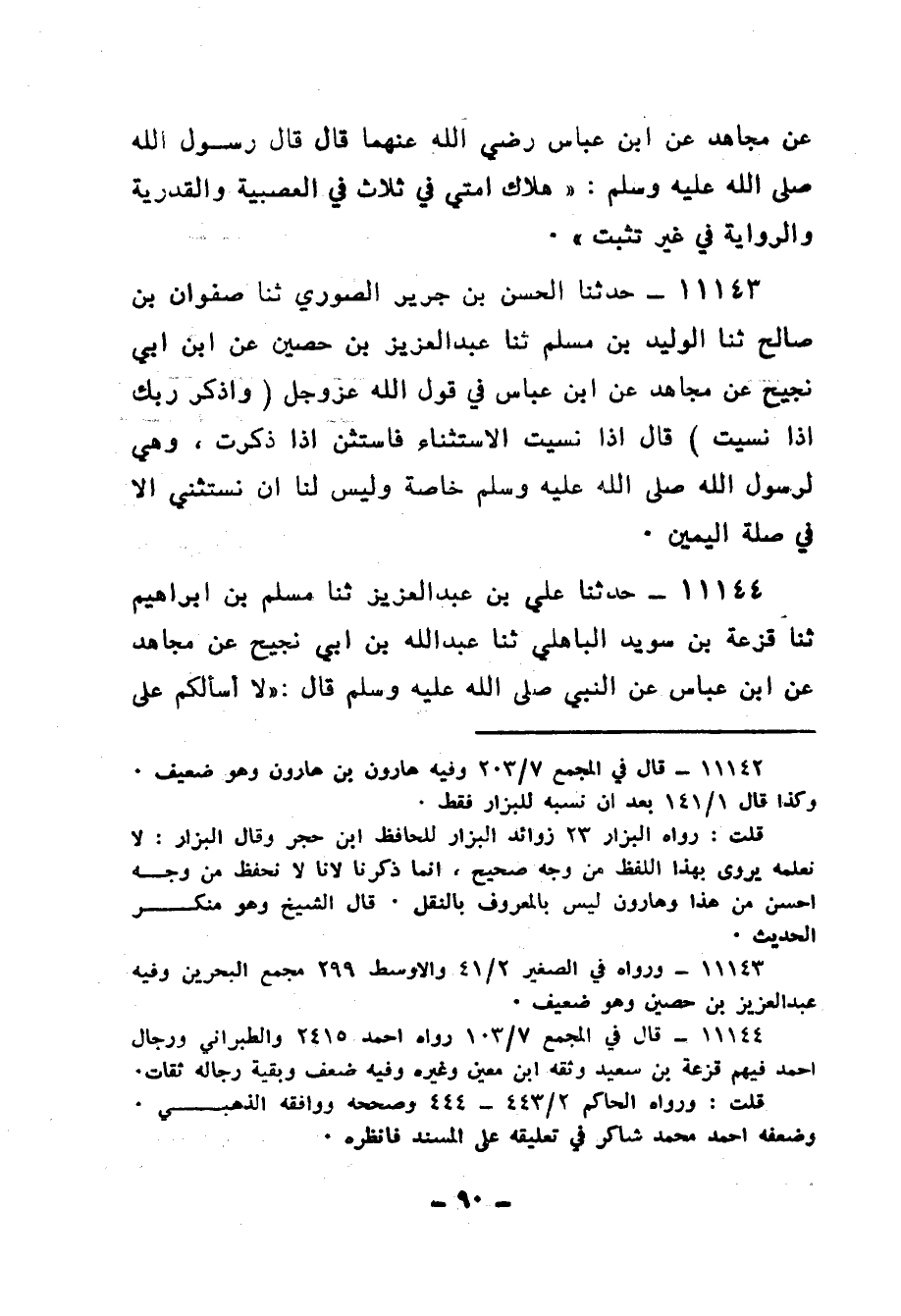 11143 - حَدَّثَنَا الْحَسَنُ بْنُ جَرِيرٍ الصُّورِيُّ، ثنا صَفْوَانُ بْنُ صَالِحٍ، ثنا الْوَلِيدُ بْنُ مُسْلِمٍ، ثنا عَبْدُ الْعَزِيزِ بْنُ حُصَيْنٍ، عَنِ ابْنِ أَبِي نَجِيحٍ، عَنْ مُجَاهِدٍ، عَنِ ابْنِ عَبَّاسٍ، فِي قَوْلِ اللهِ عَزَّ وَجَلَّ {وَاذْكُرْ رَبَّكَ إِذَا نَسِيتَ} [الكهف: 24] قَالَ: «§إِذَا نَسِيتَ الِاسْتِثْنَاءَ، فاسْتَثْنِ إِذَا ذَكَرْتَ، وَهِي لِرَسُولِ اللهِ صَلَّى اللهُ عَلَيْهِ وَسَلَّمَ خَاصَّةً، وَلَيْسَ لَنَا أَنْ نَسْتَثْنِيَ إِلَّا فِي صِلَةِ الْيَمِينِ»