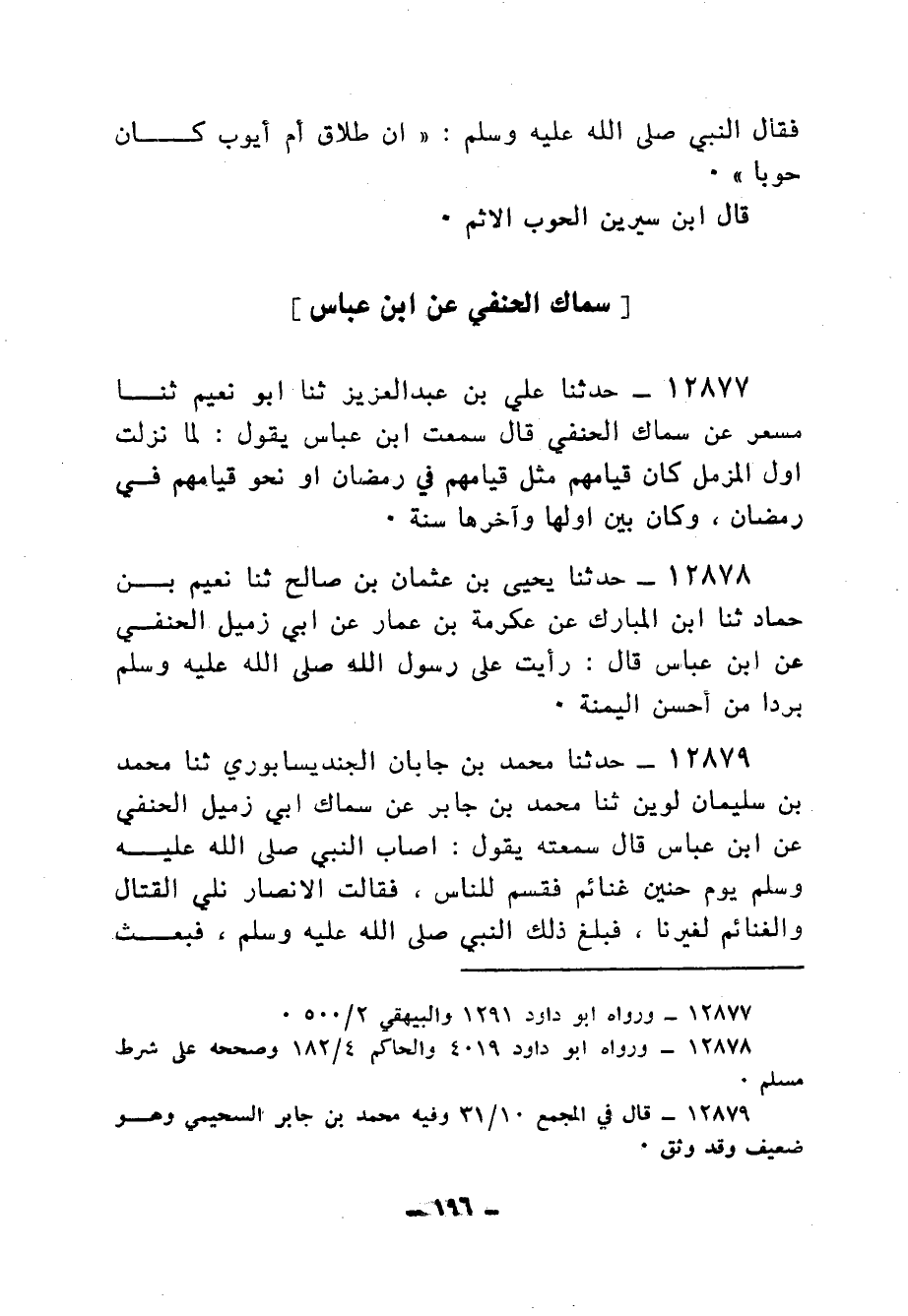 12878 - حَدَّثَنَا يَحْيَى بْنُ عُثْمَانَ بْنِ صَالِحٍ، ثنا نُعَيْمُ بْنُ حَمَّادٍ، ثنا ابْنُ الْمُبَارَكِ، عَنْ عِكْرِمَةَ بْنِ عَمَّارٍ، عَنْ أَبِي زُمَيْلٍ الْحَنَفِيِّ، عَنِ ابْنِ عَبَّاسٍ، قَالَ: «§رَأَيْتُ عَلَى رَسُولِ اللهِ صَلَّى اللهُ عَلَيْهِ وَسَلَّمَ بُرْدًا مِنْ أَحْسَنِ الْيُمْنَةِ»