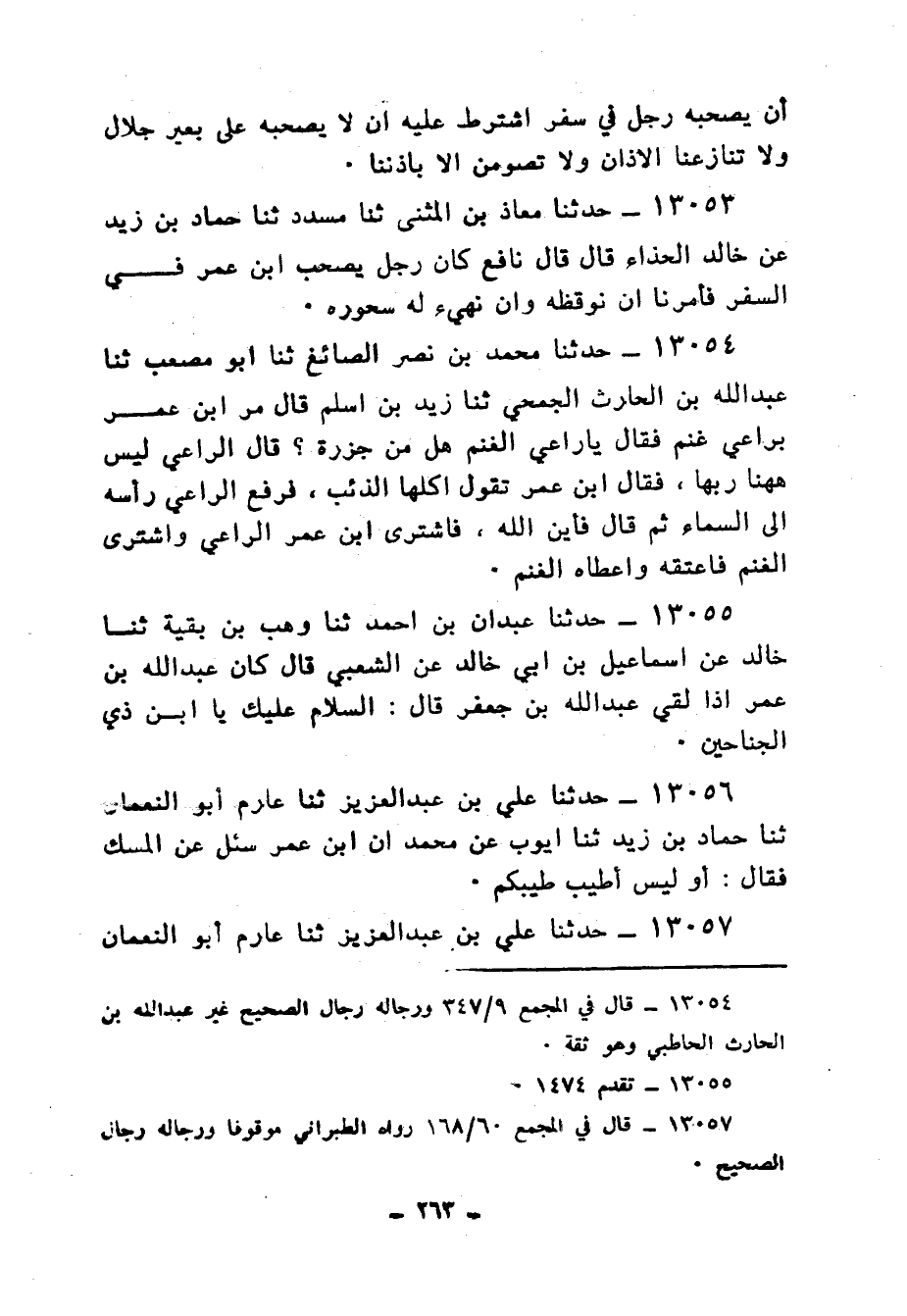 13053 - حَدَّثَنَا مُعَاذُ بْنُ الْمُثَنَّى، ثنا مُسَدَّدٌ، ثنا حَمَّادُ بْنُ زَيْدٍ، عَنْ خَالِدٍ الْحَذَّاءِ، قَالَ: قَالَ نَافِعٌ: كَانَ رَجُلٌ يَصْحَبُ ابْنَ عُمَرَ فِي السَّفَرِ: «فَأَمَرَنَا أَنْ §نُوقِظَهُ، وَأَنْ نُهِيِّئَ لَهُ سَحُورَهُ»