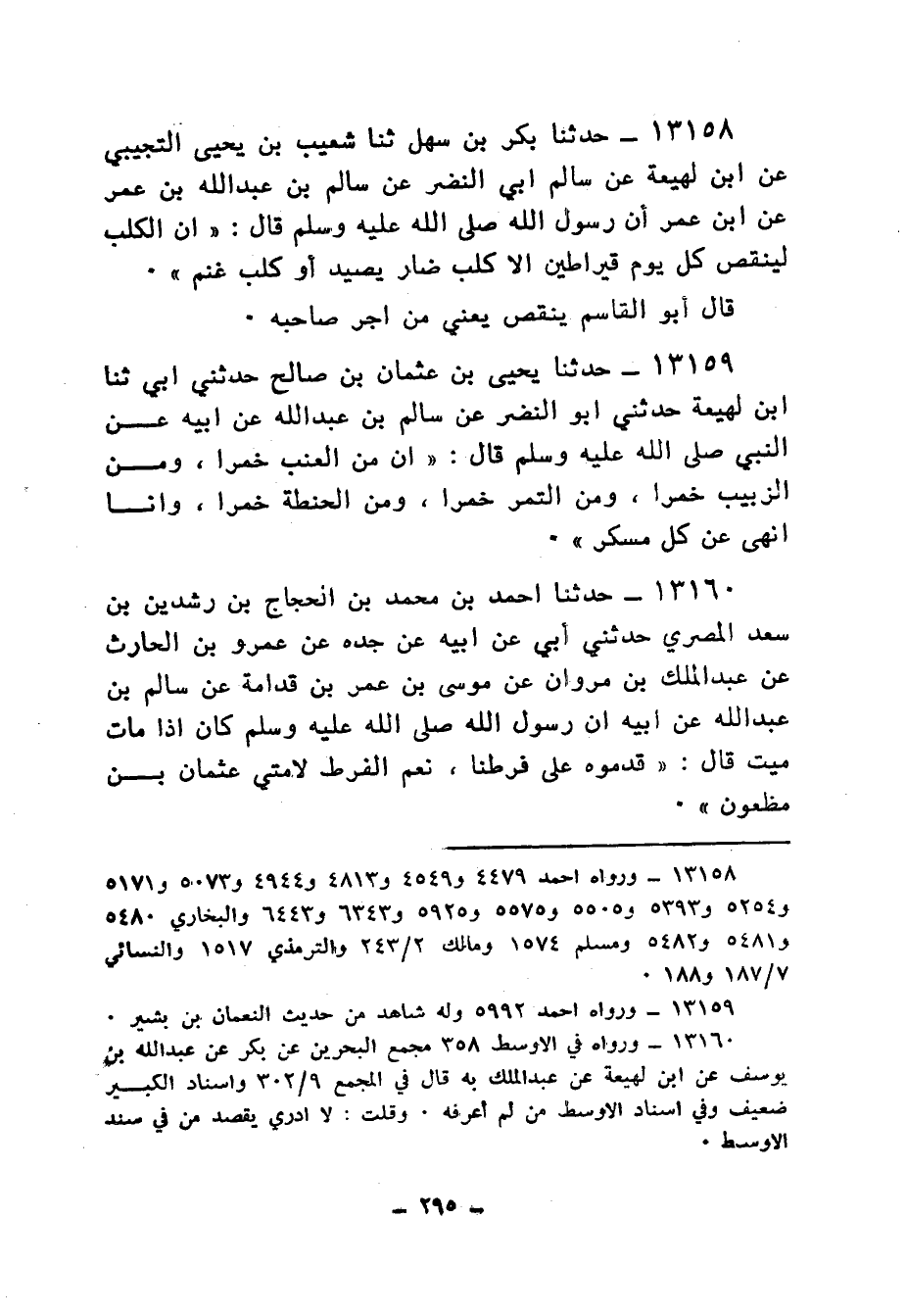 13159 - حَدَّثَنَا يَحْيَى بْنُ عُثْمَانَ بْنِ صَالِحٍ، حَدَّثَنِي أَبِي، ثنا ابْنُ لَهِيعَةَ، حَدَّثَنِي أَبُو النَّضْرِ، عَنْ سَالِمِ بْنِ عَبْدِ اللهِ، عَنْ أَبِيهِ، عَنِ النَّبِيِّ صَلَّى اللهُ عَلَيْهِ وَسَلَّمَ قَالَ: «إِنَّ §مِنَ الْعِنَبِ خَمْرًا، وَمِنَ الْعَسَلِ خَمْرًا، وَمِنَ الزَّبِيبِ خَمْرًا، وَمِنَ التَّمْرِ خَمْرًا، وَمِنَ الْحِنْطَةِ خَمْرًا، وَأَنَا أَنْهَى عَنْ كُلِّ مُسْكِرٍ»