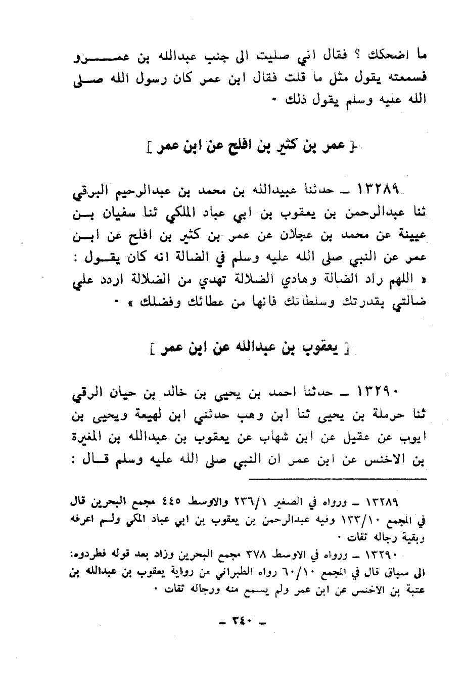 13289 - حَدَّثَنَا عُبَيْدُ اللهِ بْنُ مُحَمَّدِ بْنِ عَبْدِ الرَّحِيمِ الْبَرْقِيُّ، ثنا عَبْدُ الرَّحْمَنِ بْنُ يَعْقُوبَ بْنِ أَبِي عَبَّادٍ الْمَكِّيُّ، ثنا سُفْيَانُ بْنُ عُيَيْنَةَ، عَنْ مُحَمَّدِ بْنِ عَجْلَانَ، عَنْ عُمَرَ بْنِ كَثِيرِ بْنِ أَفْلَحَ، عَنِ ابْنِ عُمَرَ، عَنِ النَّبِيِّ صَلَّى اللهُ عَلَيْهِ وَسَلَّمَ: " فِي الضَّالَّةِ أَنَّهُ كَانَ يَقُولُ: «§اللهُمَّ رَادَّ الضَّالَّةِ، وَهَادِيَ الضَّلَالَةِ تَهْدِي مِنَ الضَّلَالَةِ، ارْدُدْ عَلَيَّ ضَالَّتِي بِقُدْرَتِكِ وَسُلْطَانِكَ، فَإِنَّهَا مِنْ عَطَائِكَ وَفَضْلِكَ»
