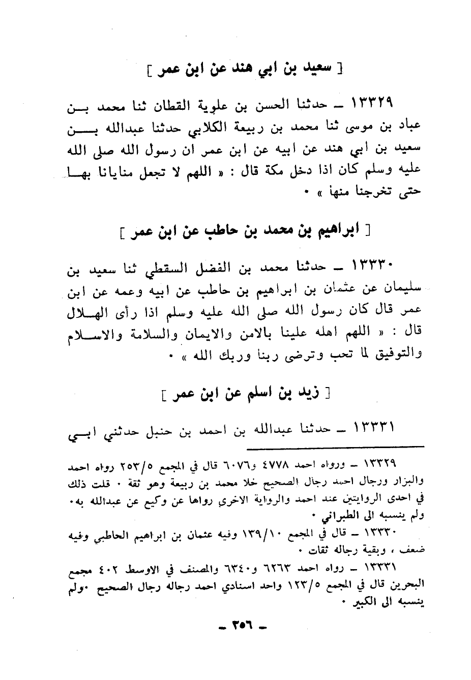 13330 - حَدَّثَنَا مُحَمَّدُ بْنُ الْفَضْلِ السَّقَطِيُّ، ثنا سَعِيدُ بْنُ سُلَيْمَانَ، عَنْ عُثْمَانَ بْنِ إِبْرَاهِيمَ بْنِ حَاطِبٍ، عَنْ أَبِيهِ وَعَمِّهِ، عَنِ ابْنِ عُمَرَ، قَالَ: كَانَ رَسُولُ اللهِ صَلَّى اللهُ عَلَيْهِ وَسَلَّمَ، إِذَا رَأَى الْهِلَالَ قَالَ: «§اللهُمَّ أَهِلَّهُ عَلَيْنَا بِالْأَمْنِ وَالْإِيمَانِ، وَالسَّلَامَةِ وَالْإِسْلَامِ، وَالتَّوْفِيقِ لِمَا تُحِبُّ، وَتَرْضَى , رَبُّنَا وَرَبُّكَ اللهُ»