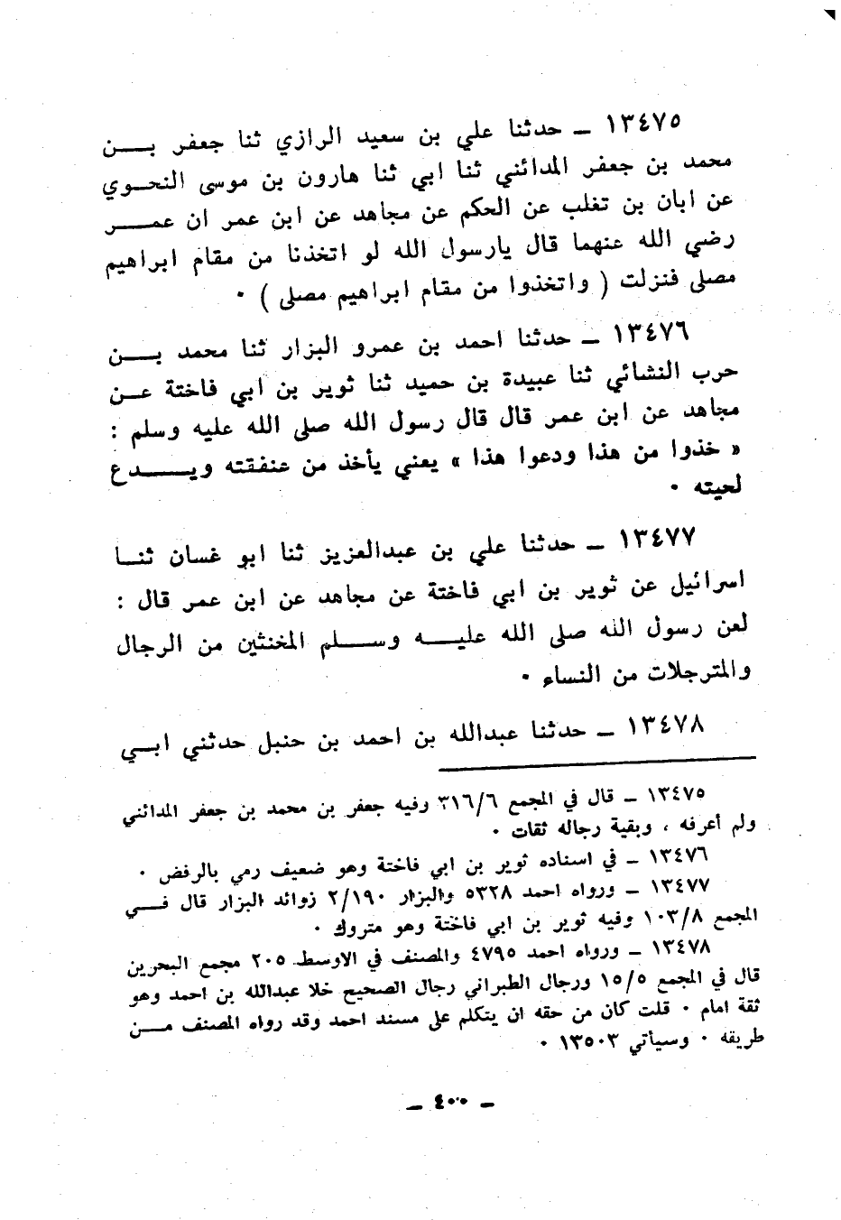 13477 - حَدَّثَنَا عَلِيُّ بْنُ عَبْدِ الْعَزِيزِ، ثنا أَبُو غَسَّانَ، ثنا إِسْرَائِيلُ، عَنْ ثُوَيْرِ بْنِ أَبِي فَاخِتَةَ، عَنْ مُجَاهِدٍ، عَنِ ابْنِ عُمَرَ، قَالَ: «§لَعَنَ رَسُولُ اللهِ صَلَّى اللهُ عَلَيْهِ وَسَلَّمَ، الْمُخَنَّثِينَ مِنَ الرِّجَالِ، وَالْمُتَرَجِّلَاتِ مِنَ النِّسَاءِ»