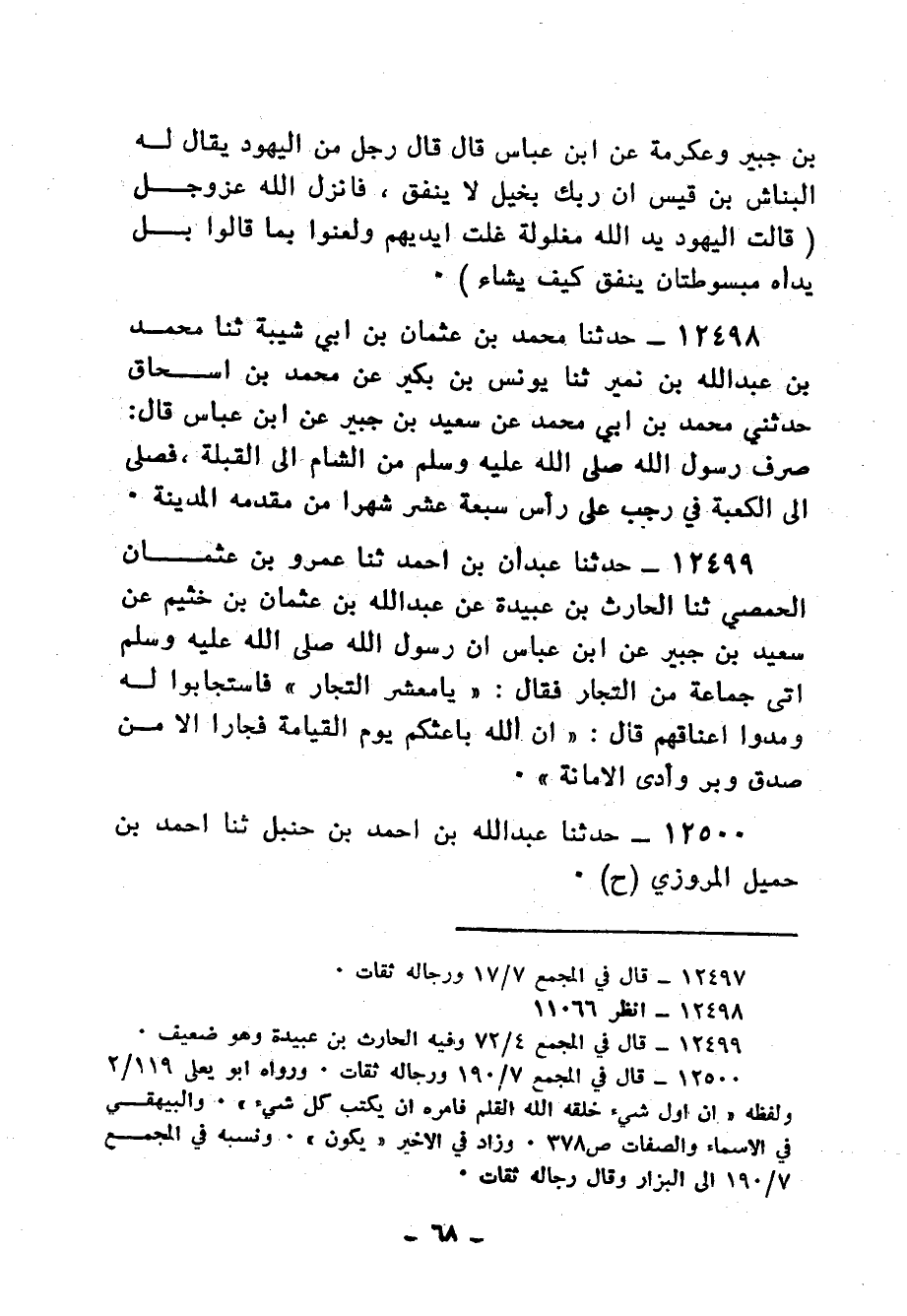 12498 - حَدَّثَنَا مُحَمَّدُ بْنُ عُثْمَانَ بْنِ أَبِي شَيْبَةَ، ثنا مُحَمَّدُ بْنُ عَبْدِ اللهِ بْنِ نُمَيْرٍ، ثنا يُونُسُ بْنُ بُكَيْرٍ، عَنْ مُحَمَّدِ بْنِ إِسْحَاقَ، حَدَّثَنِي مُحَمَّدُ بْنُ أَبِي مُحَمَّدٍ، عَنْ سَعِيدِ بْنِ جُبَيْرٍ، عَنِ ابْنِ عَبَّاسٍ قَالَ: «صُرِفَ رَسُولُ اللهِ صَلَّى اللهُ عَلَيْهِ وَسَلَّمَ مِنَ الشَّامِ إِلَى الْقِبْلَةِ، §فَصَلَّى إِلَى الْكَعْبَةِ فِي رَجَبٍ عَلَى رَأْسِ سَبْعَةَ عَشَرَ شَهْرًا مِنْ مَقْدَمِهِ الْمَدِينَةَ»