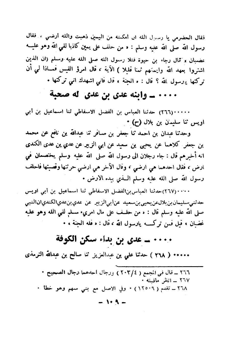 266 - حَدَّثَنَا الْعَبَّاسُ بْنُ الْفَضْلِ الْأَسْفَاطِيُّ، ثَنَا إِسْمَاعِيلُ بْنُ أَبِي أُوَيْسٍ، ثَنَا سُلَيْمَانُ بْنُ بِلَالٍ، ح وَحَدَّثَنَا عَبْدَانُ بْنُ أَحْمَدَ، ثَنَا جَعْفَرُ بْنُ مُسَافِرٍ، ثَنَا عَبْدُ اللهِ بْنُ نَافِعٍ، عَنْ مُحَمَّدِ بْنِ جَعْفَرٍ، كِلَاهُمَا عَنْ يَحْيَى بْنِ سَعِيدٍ، عَنْ أَبِي الزُّبَيْرِ، عَنْ عَدِيِّ بْنِ عَدِيٍّ الْكِنْدِيِّ، أَنَّهُ أَخْبَرَهُمْ قَالَ: جَاءَ رَجُلَانِ إِلَى رَسُولِ اللهِ صَلَّى اللهُ عَلَيْهِ وَسَلَّمَ يَخْتَصِمَانِ فِي أَرْضٍ فَقَالَ أَحَدُهُمَا: هِيَ أَرْضِي، وَقَالَ الْآخَرُ: هِيَ أَرْضِي حَرَثْتُهَا وَقَصَبْتُهَا «§فأحْلَفَ رَسُولُ اللهِ صَلَّى اللهُ عَلَيْهِ وَسَلَّمَ الَّذِي بِيَدِهِ الْأَرْضُ»