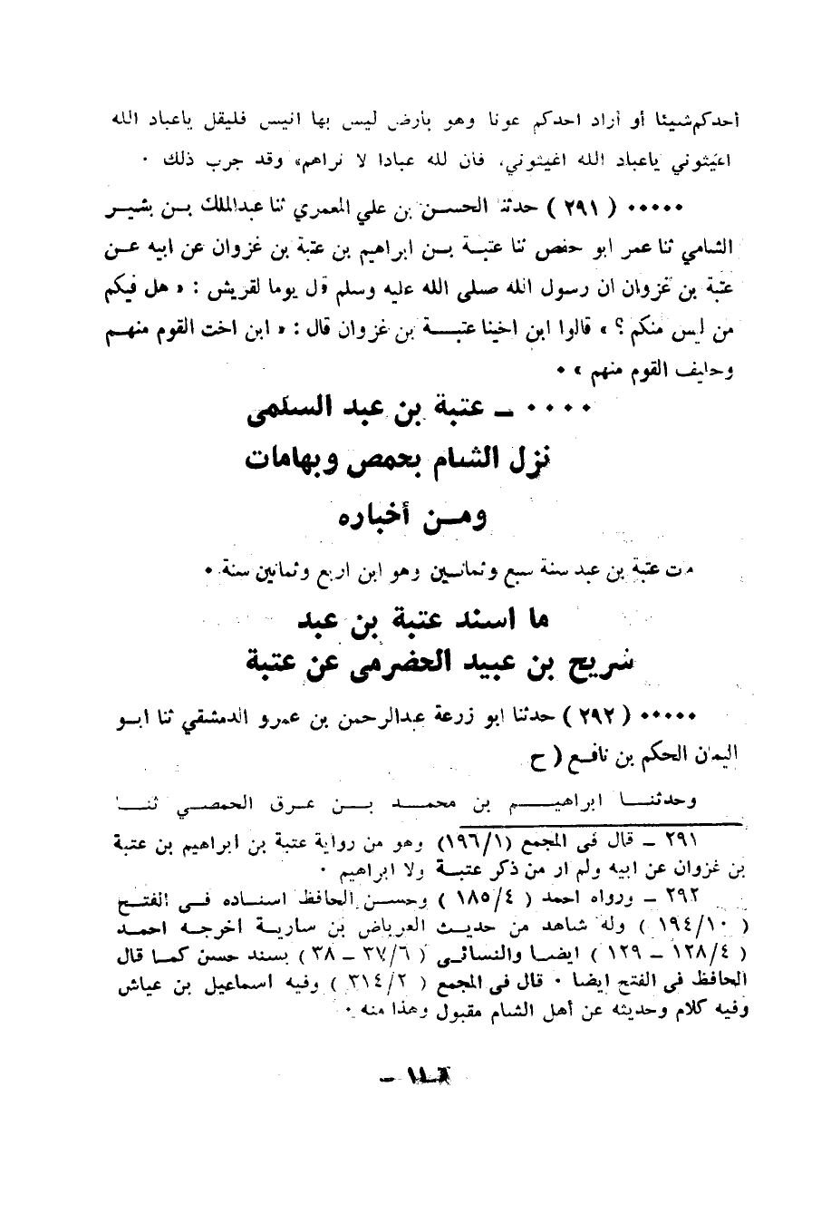 §مَا أَسْنَدَ عُتْبَةُ بْنُ عَبْدٍ