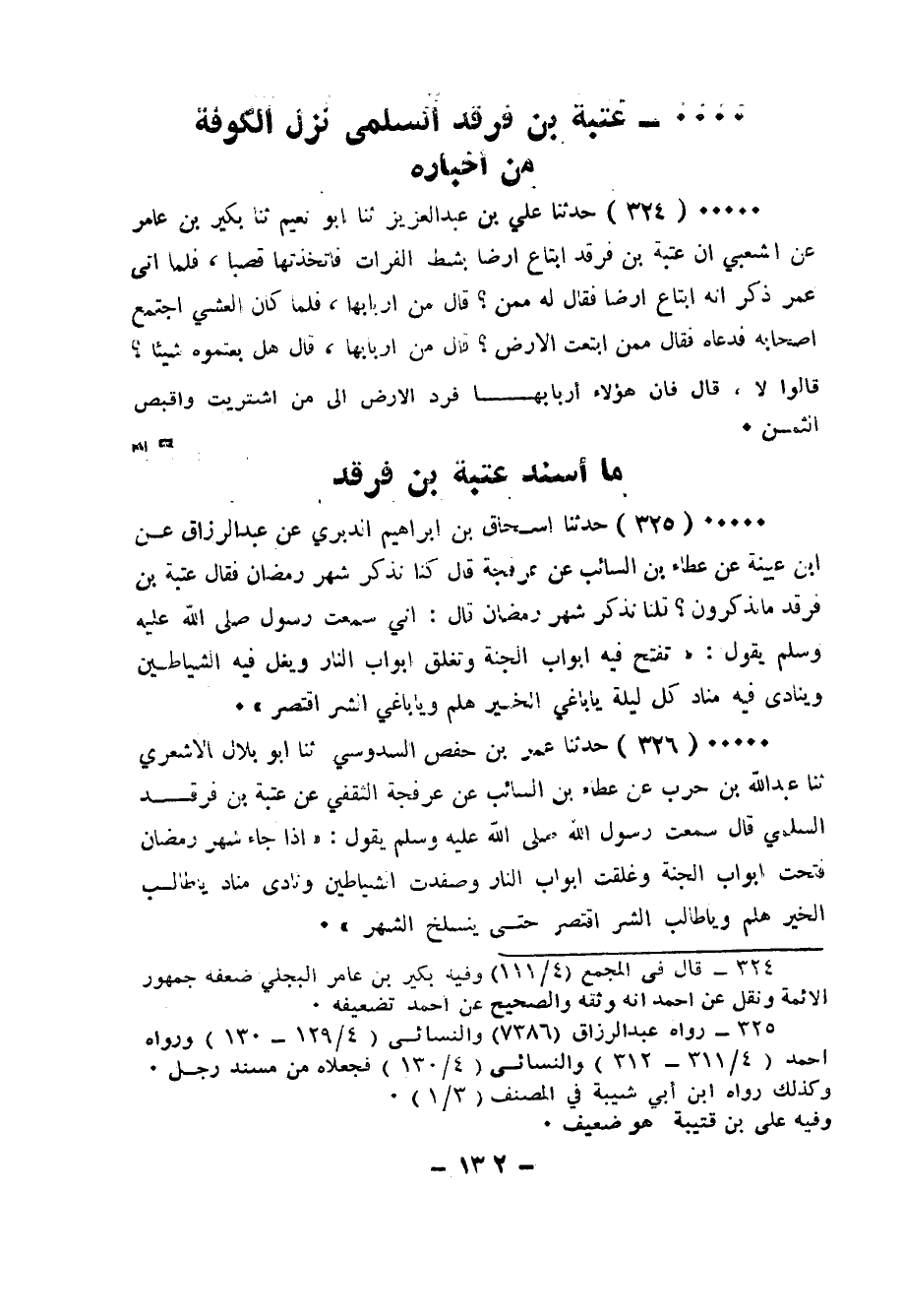 §مَا أَسْنَدَ عُتْبَةُ بْنُ فَرْقَدٍ