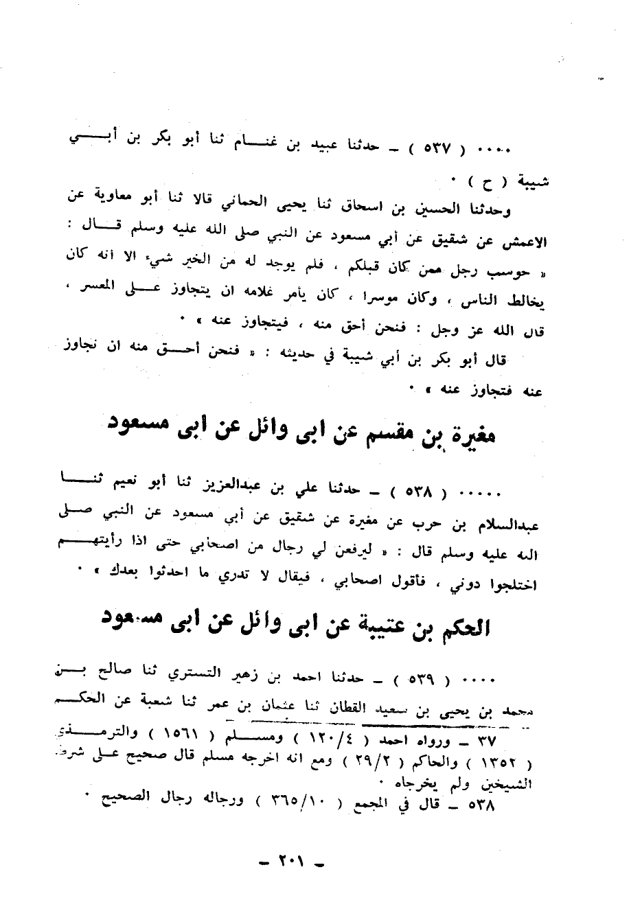§مُغِيرَةُ بْنُ مِقْسَمٍ، عَنْ أَبِي وَائِلٍ، عَنْ أَبِي مَسْعُودٍ