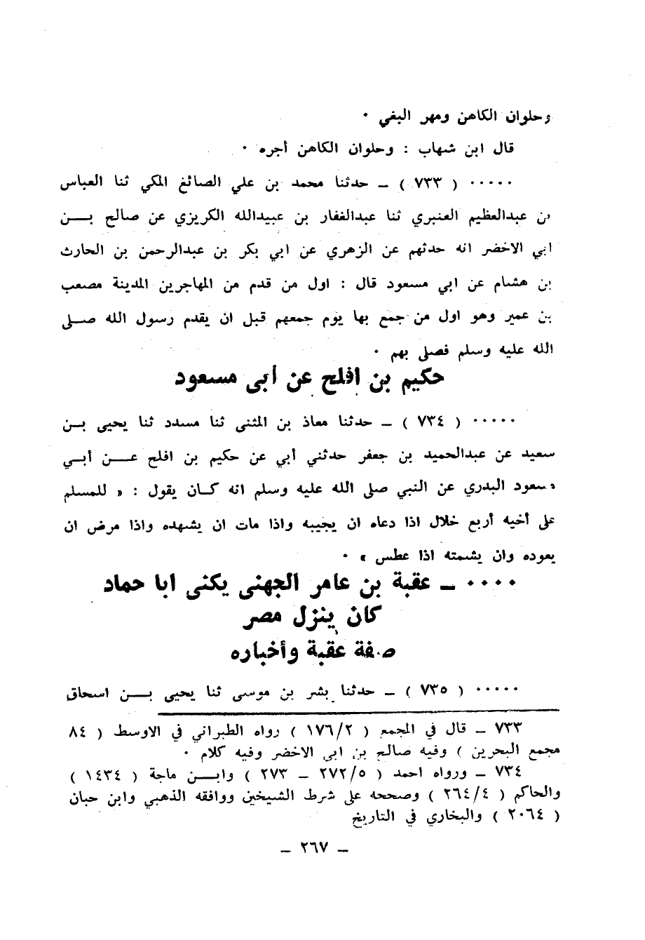 735 - حَدَّثَنَا بِشْرُ بْنُ مُوسَى، ثَنَا يَحْيَى بْنُ إِسْحَاقَ السَّيْلَحِينِيُّ، ثَنَا ابْنُ لَهِيعَةَ، عَنْ أَبِي عَقِيلٍ، حَدَّثَنِي جَدِّي، وَأَبِي، أَنَّهُمَا «رَأَيَا عُقْبَةَ بْنَ عَامِرٍ الْجُهَنِيَّ §يَصْبُغُ بِالسَّوَادِ»