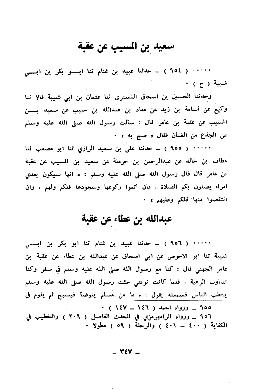 §سَعِيدُ بْنُ الْمُسَيِّبِ، عَنْ عُقْبَةَ
