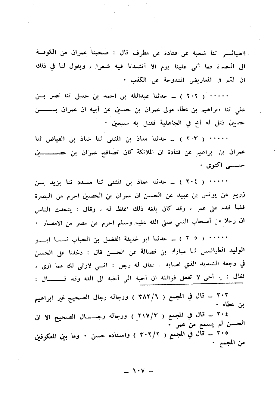 202 - حَدَّثَنَا عَبْدُ اللهِ بْنُ أَحْمَدَ بْنِ حَنْبَلٍ، ثنا نَصْرُ بْنُ عَلِيٍّ، ثنا إِبْرَاهِيمُ بْنُ عَطَاءٍ، مَوْلَى عِمْرَانَ بْنِ حُصَيْنٍ، عَنْ أَبِيهِ، أَنَّ عِمْرَانَ بْنَ حُصَيْنٍ «§قُتِلَ لَهُ أَخٌ فِي الْجَاهِلِيَّةِ، فَقَتَلَ بِهِ سَبْعِينَ»